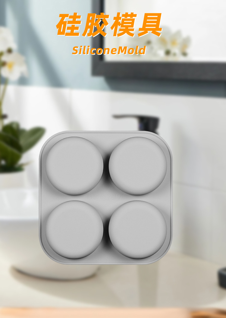 jiashi cross-border hot selling 4-piece round diy soap mold silicone soap mold jelly pudding moon cake mold 中文版
