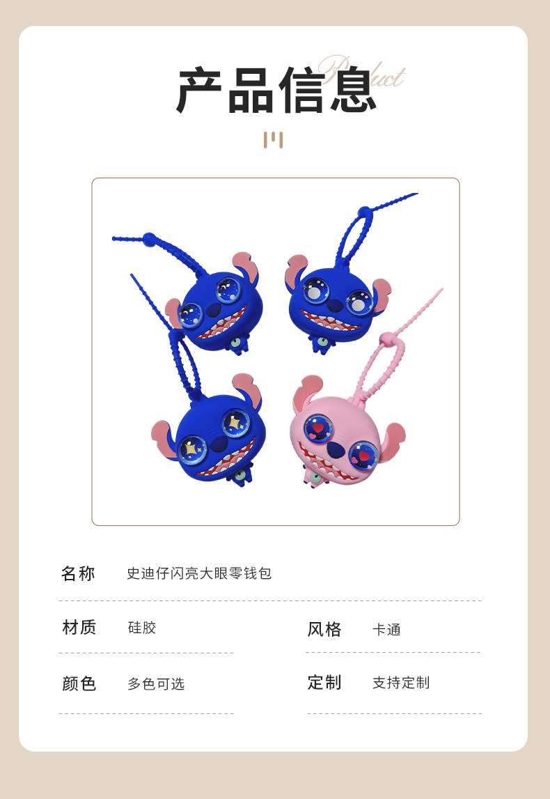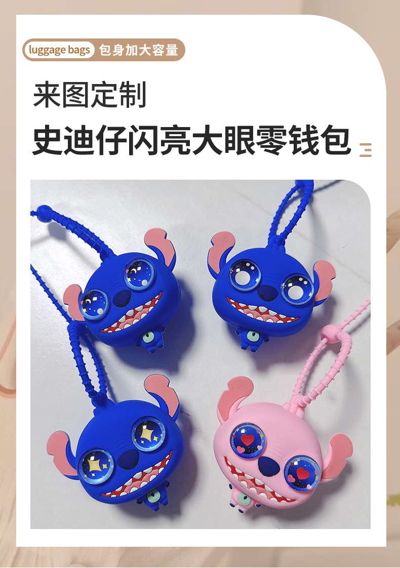 factory supply stitch shiny big eye coin purse cartoon cute creative silicone carry-on bag package pendant in stock