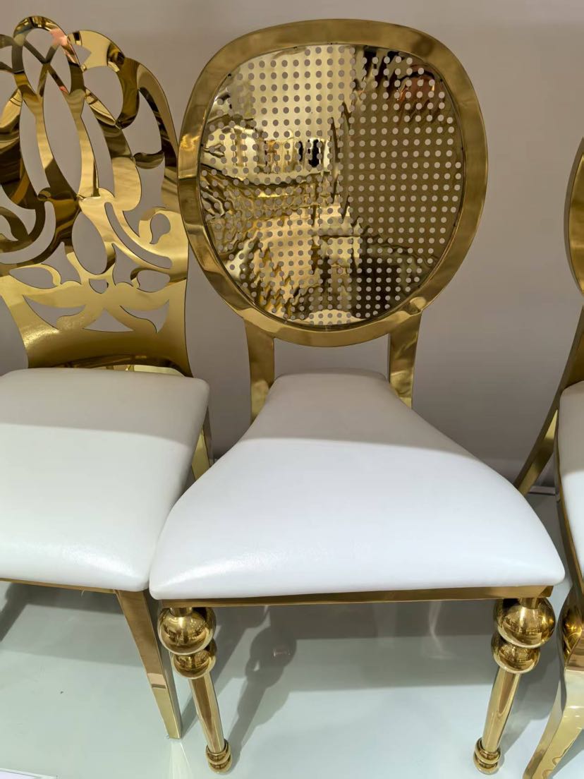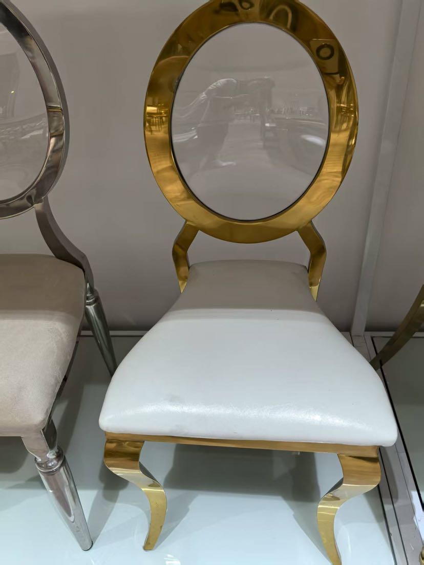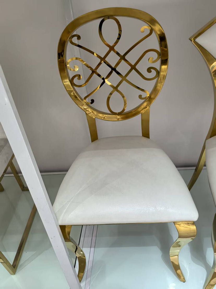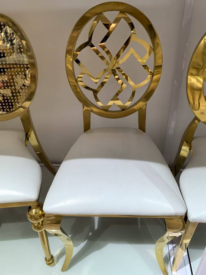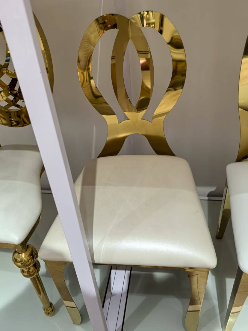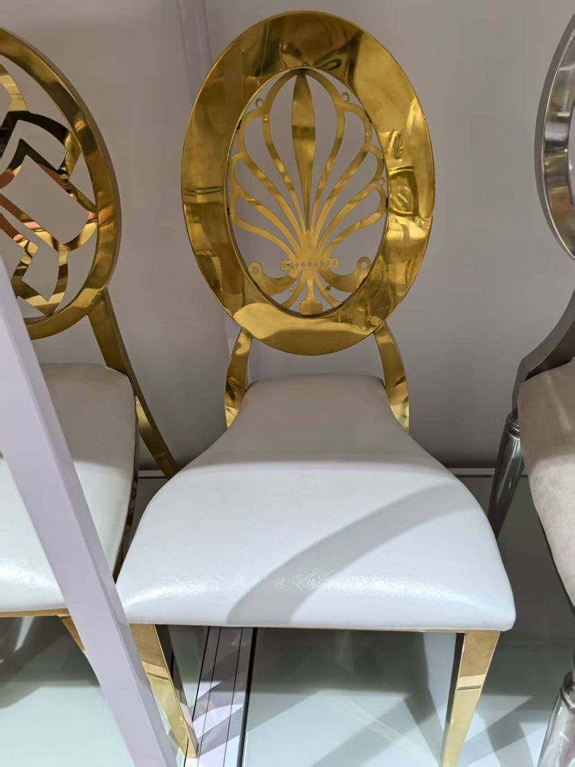 hotel wedding hall banquet hall dedicated on-site high-end stainless steel electroplated titanium chair white backrest chair 中文版