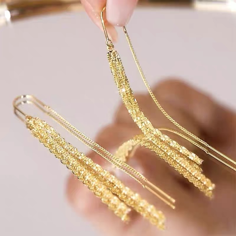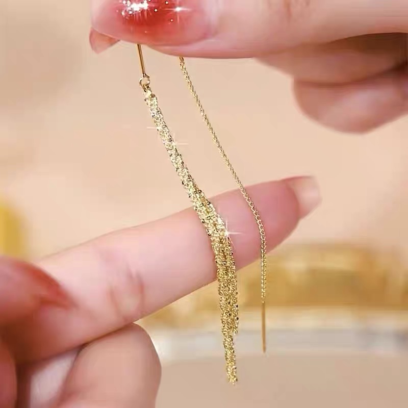 tassel hanging earrings fashion all-match long design show face small temperament item 中文版