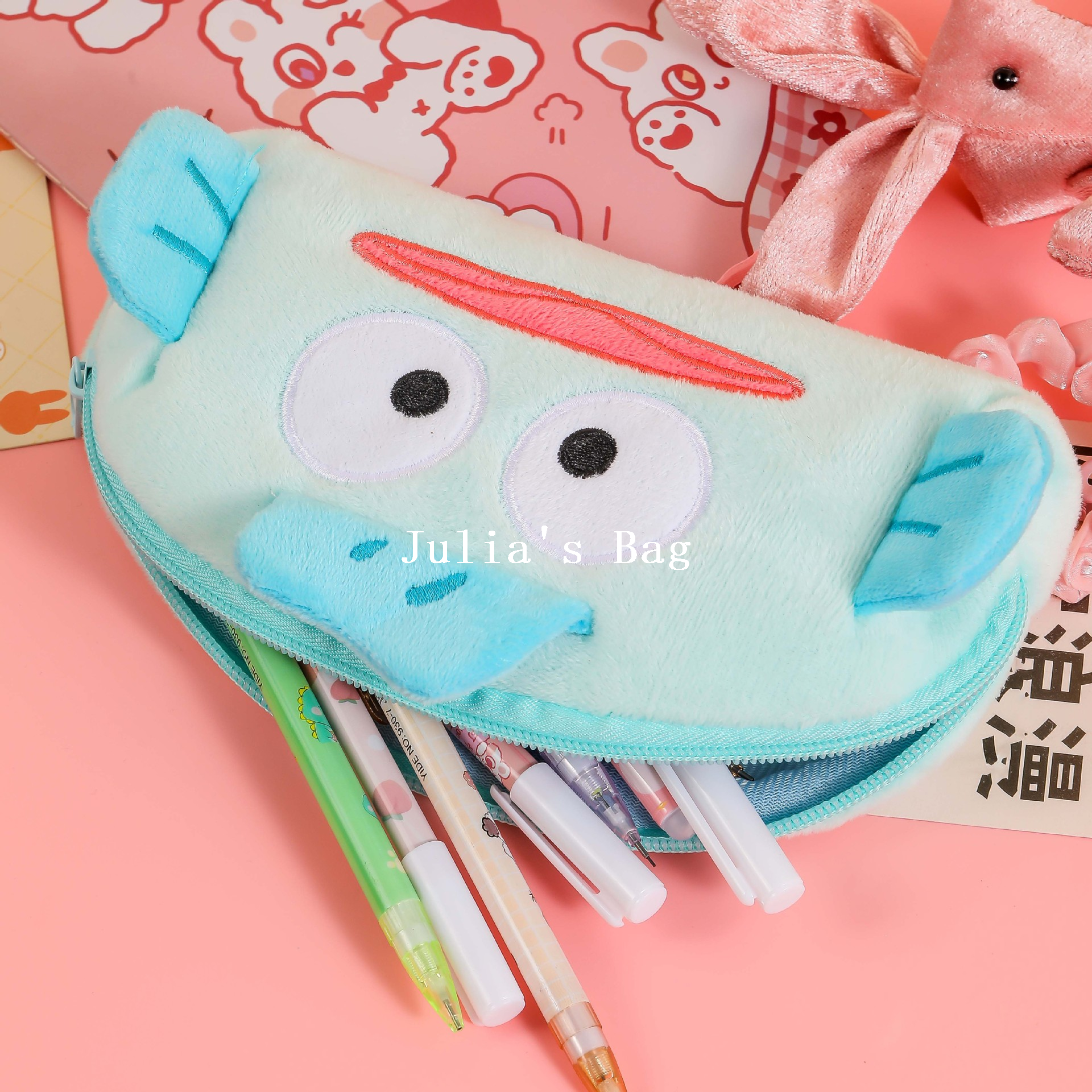 plush bag cartoon schoolbag bag children's bag plush backpack mobile phone bag school bag toy bag plush pencil bag 中文版