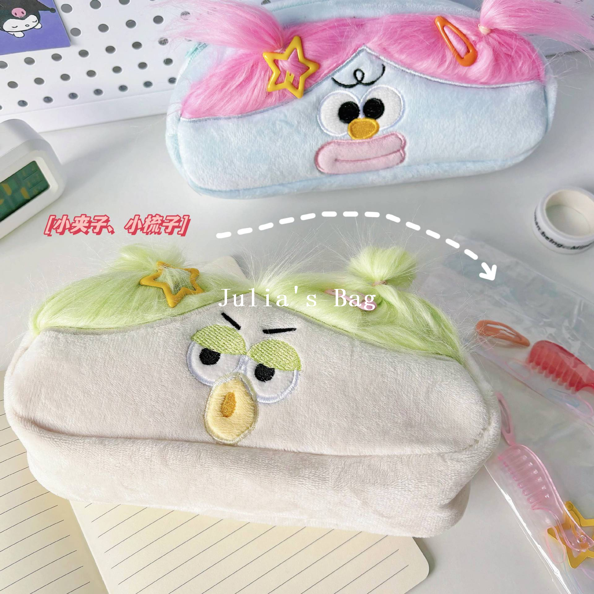 plush bag cartoon schoolbag bag children's bag plush backpack mobile phone bag school bag toy bag plush pencil bag 中文版