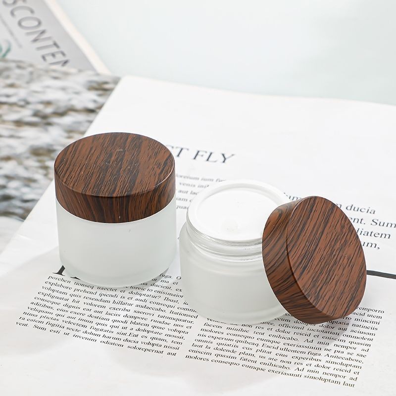 60g; black wood texture cover frosted cream bottle; glass