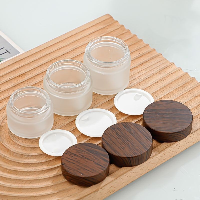 5g; black wood texture cover frosted cream bottle; glass