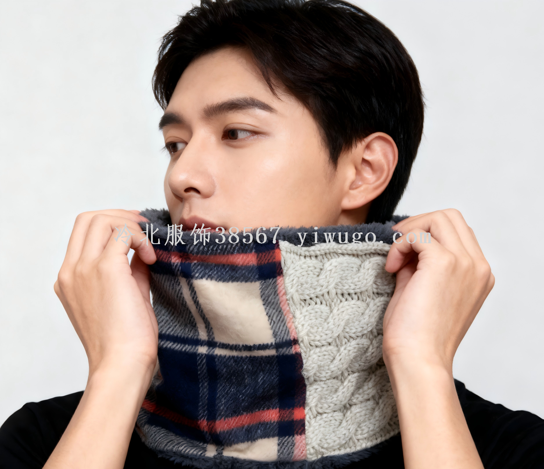 knitted twisted plaid plush face protection face mask thickened outdoor headgear plain scarf scarf wind mask bandana 中文版