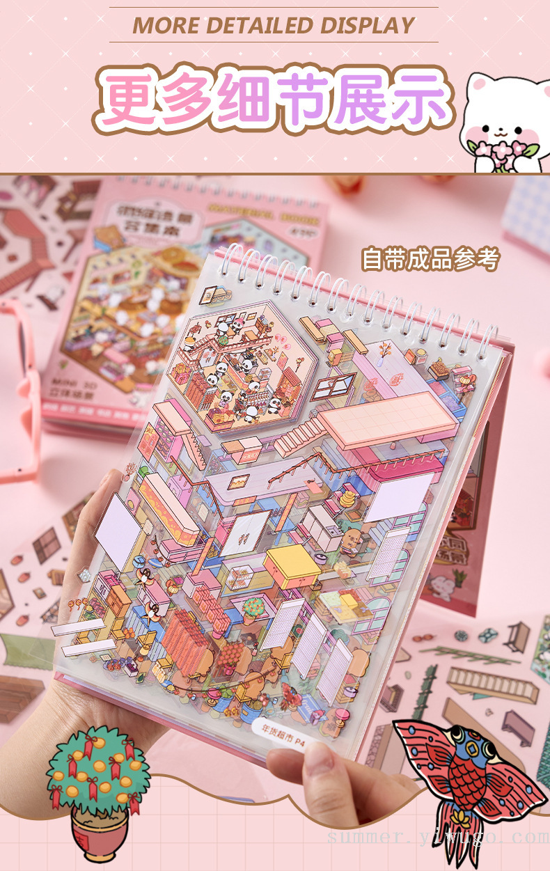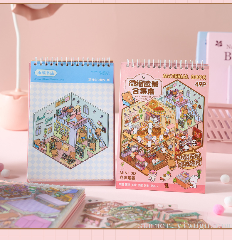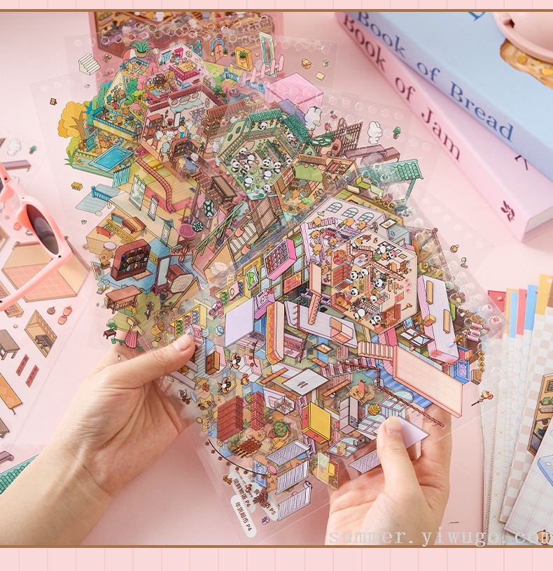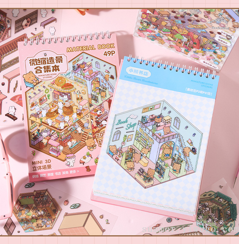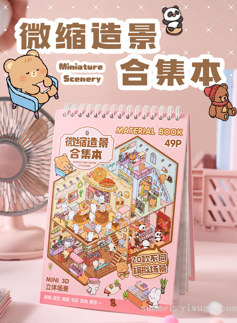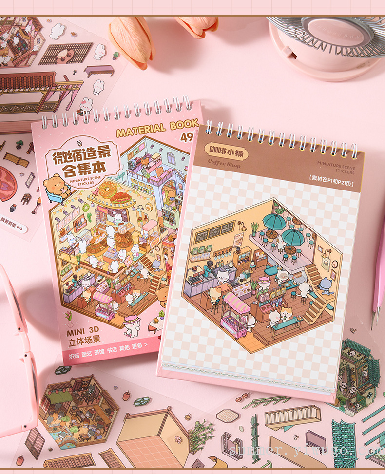miniature landscaping sticker book collection 3d stereo cottage stickers children's handmade scene sticker book collage small pattern 中文版