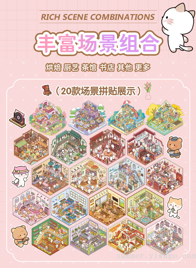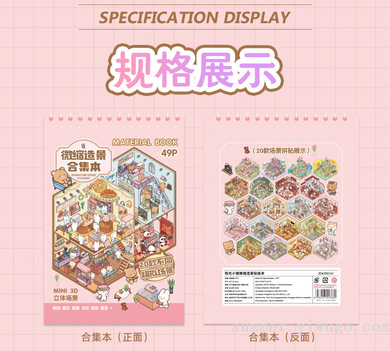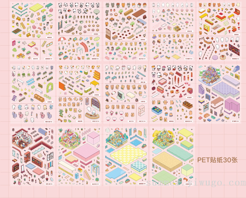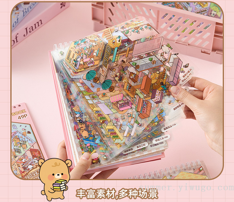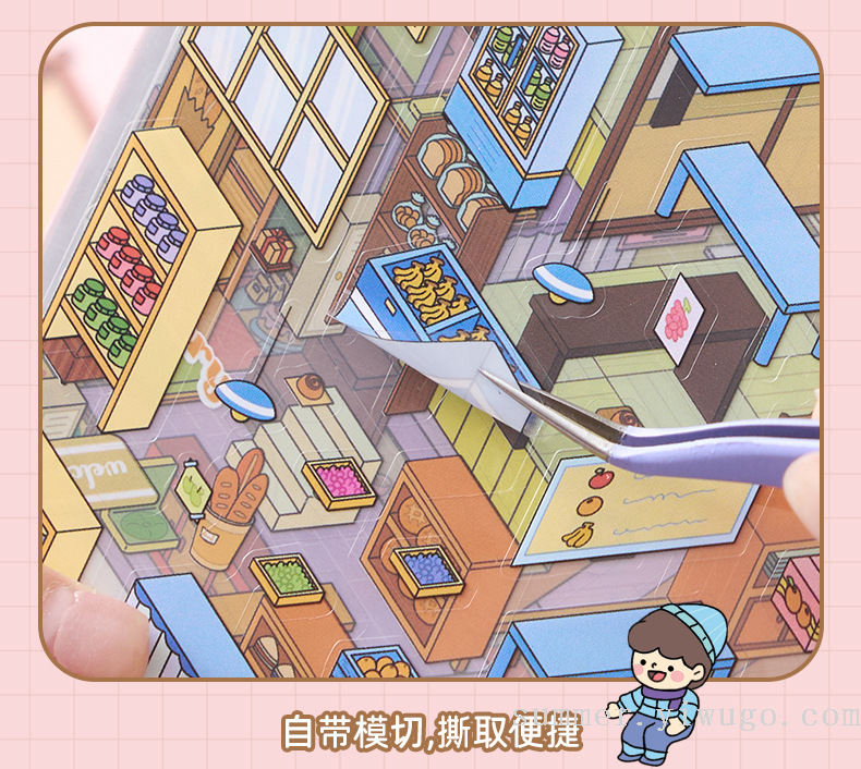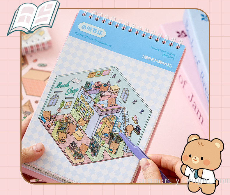 miniature landscaping sticker book collection 3d stereo cottage stickers children's handmade scene sticker book collage small pattern 中文版