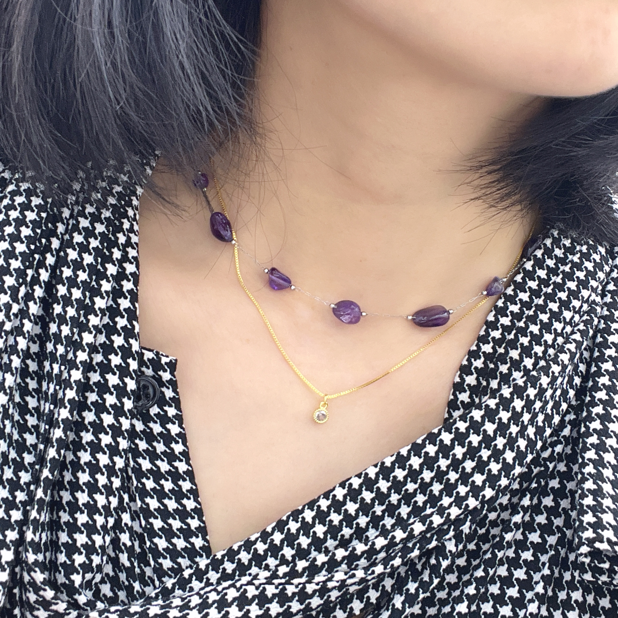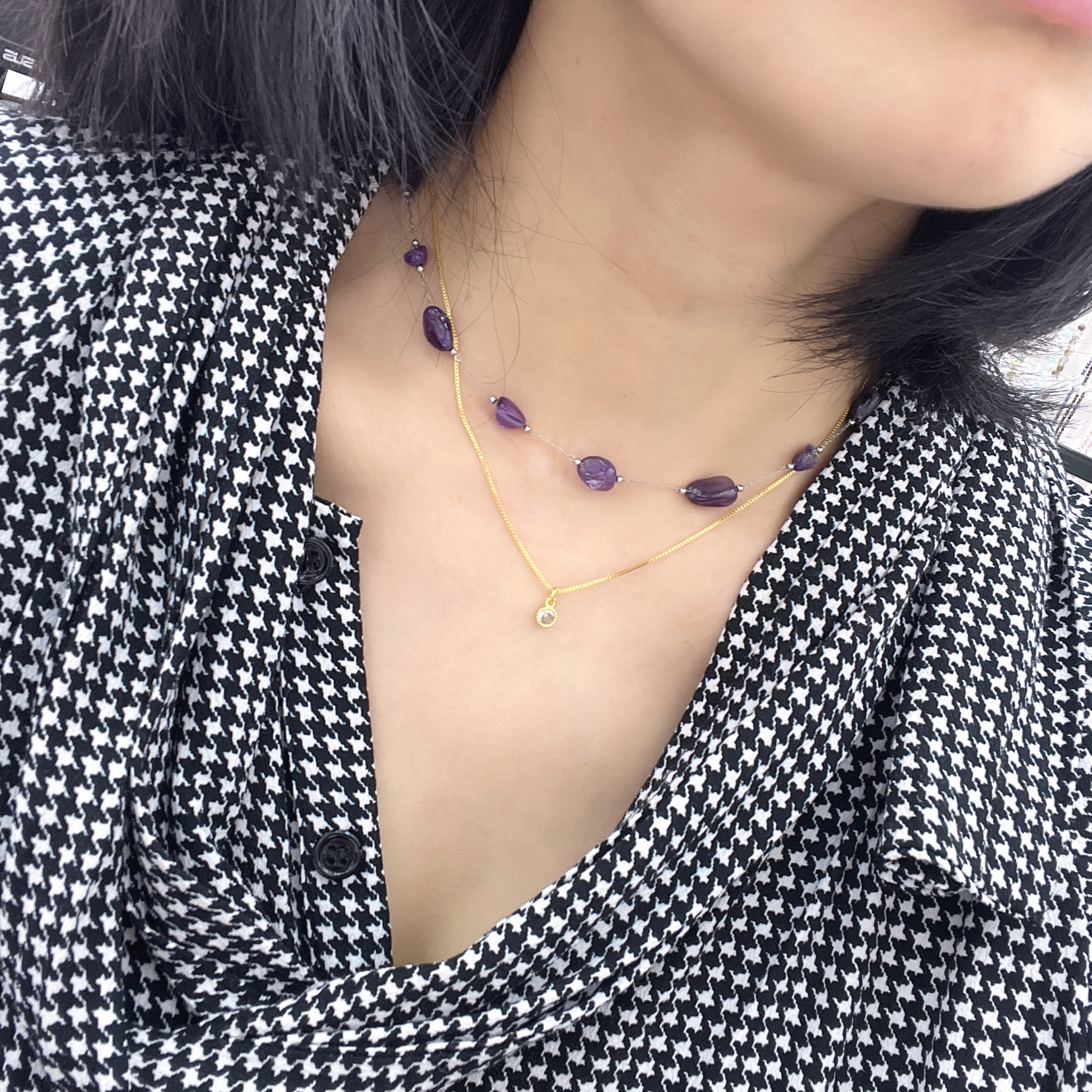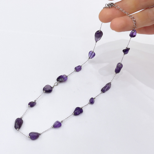 yunyi decorated home natural amethyst necklace special-shaped amethyst clavicle chain stainless steel ornament wholesale spot simple 中文版