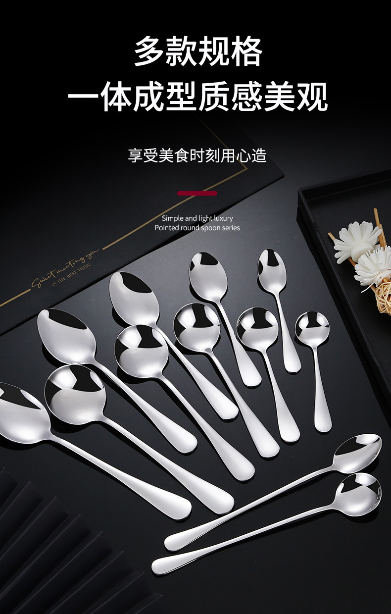 1010 stainless steel spoon household thickened dinner round spoon dessert spoon mirror bright 304 stainless steel tableware 中文版