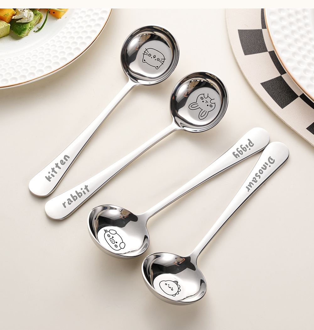 cartoon 316 stainless steel round head ladel food grade spoon children's household meal spoon spoon flat bottom deep spoon 中文版