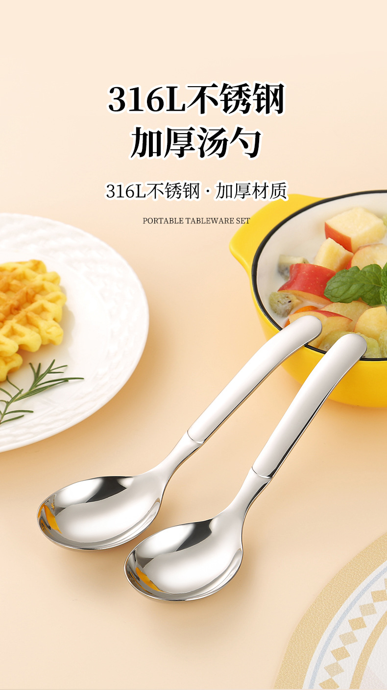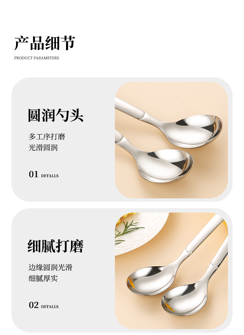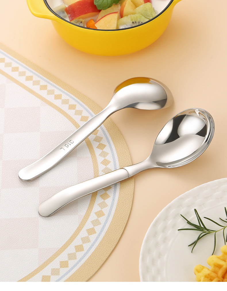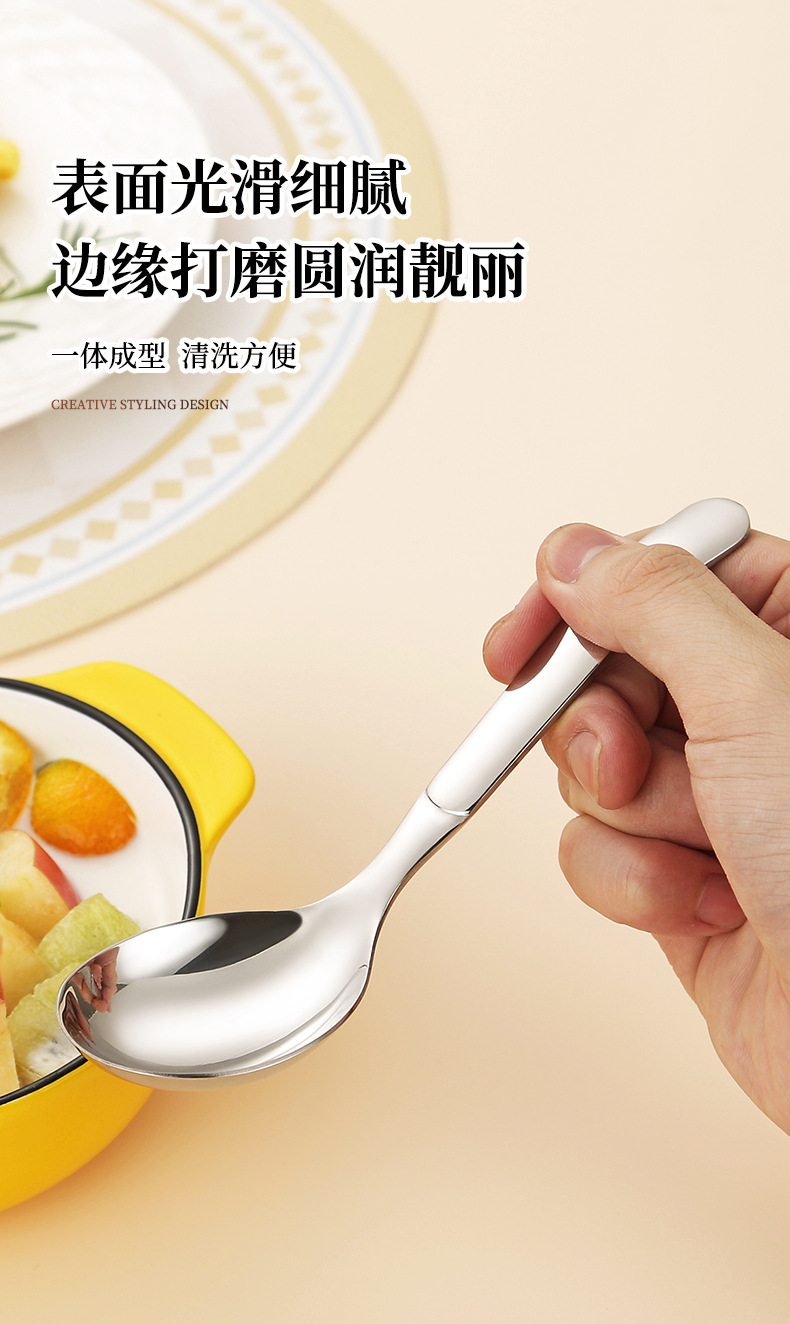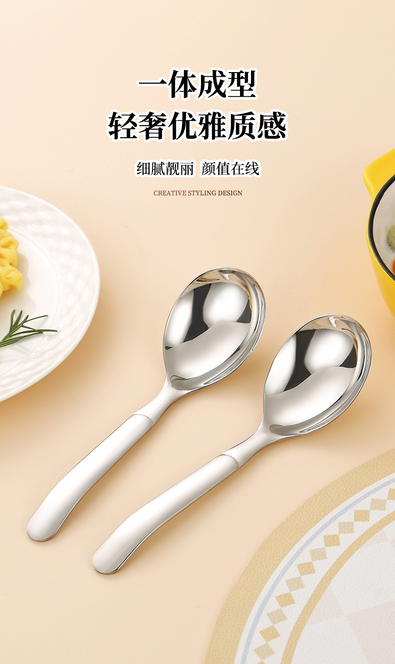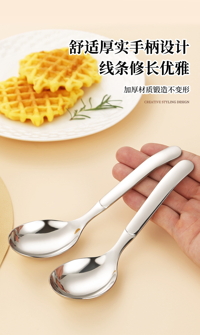 jieyang 316 stainless steel spoon good-looking dessert spoon household eating deepening thickening round spoon long handle spoon 中文版