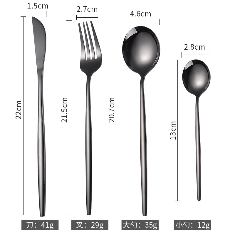 portugal stainless steel knife, fork and spoon amazon tableware golden steak knife and fork set cross-border knife, fork and spoon four-piece set 中文版
