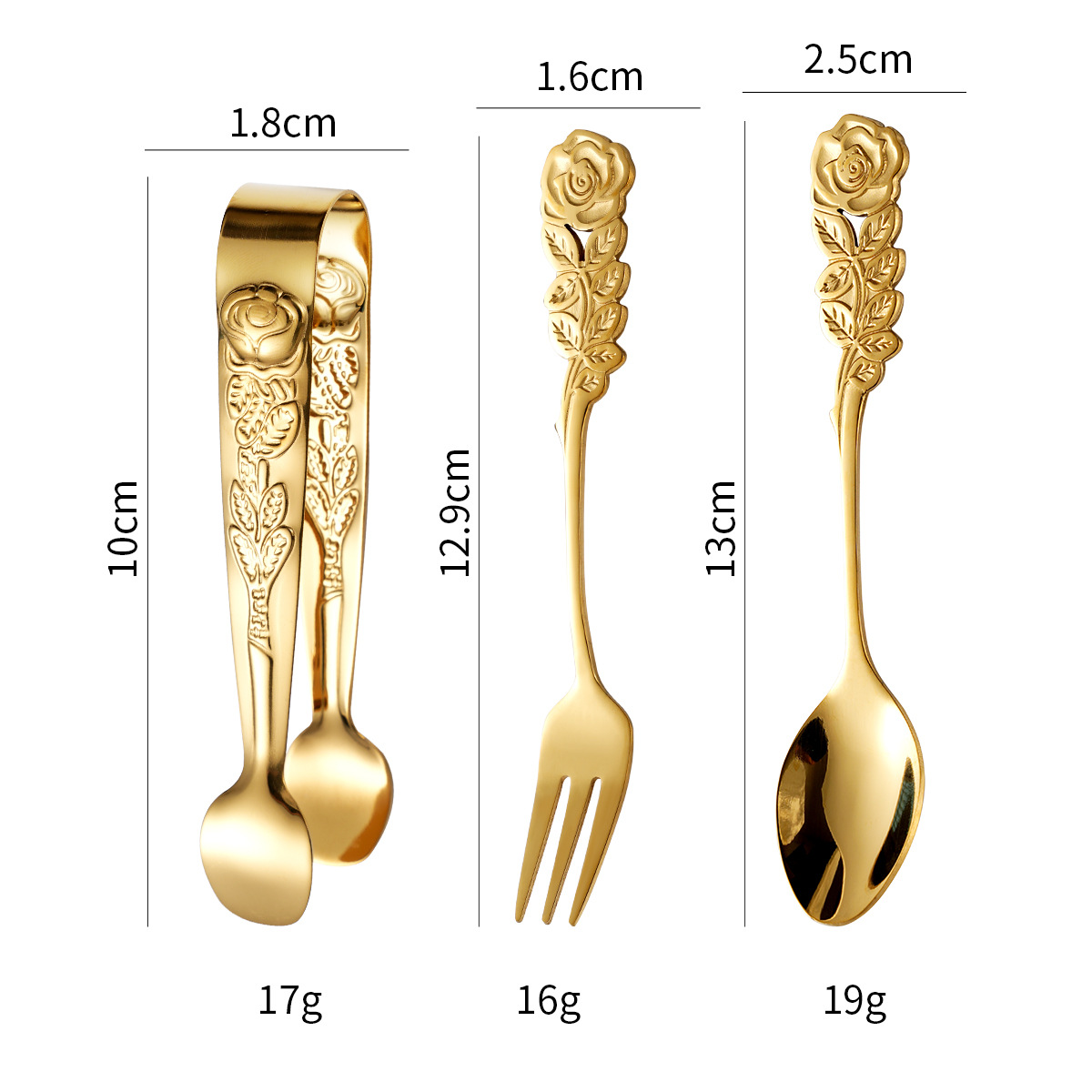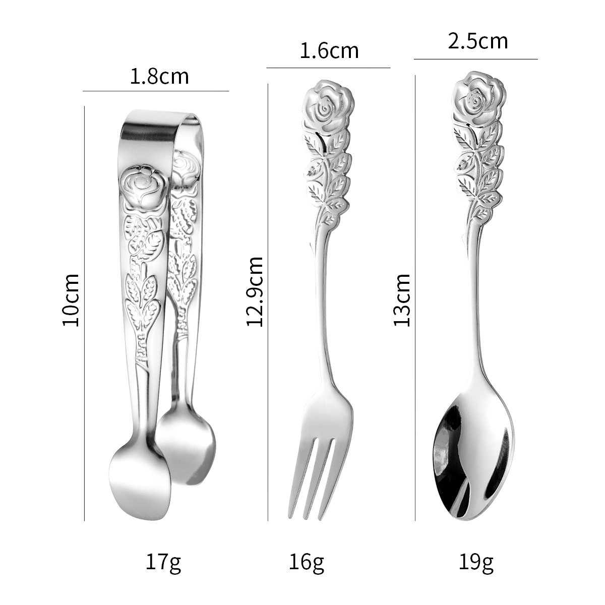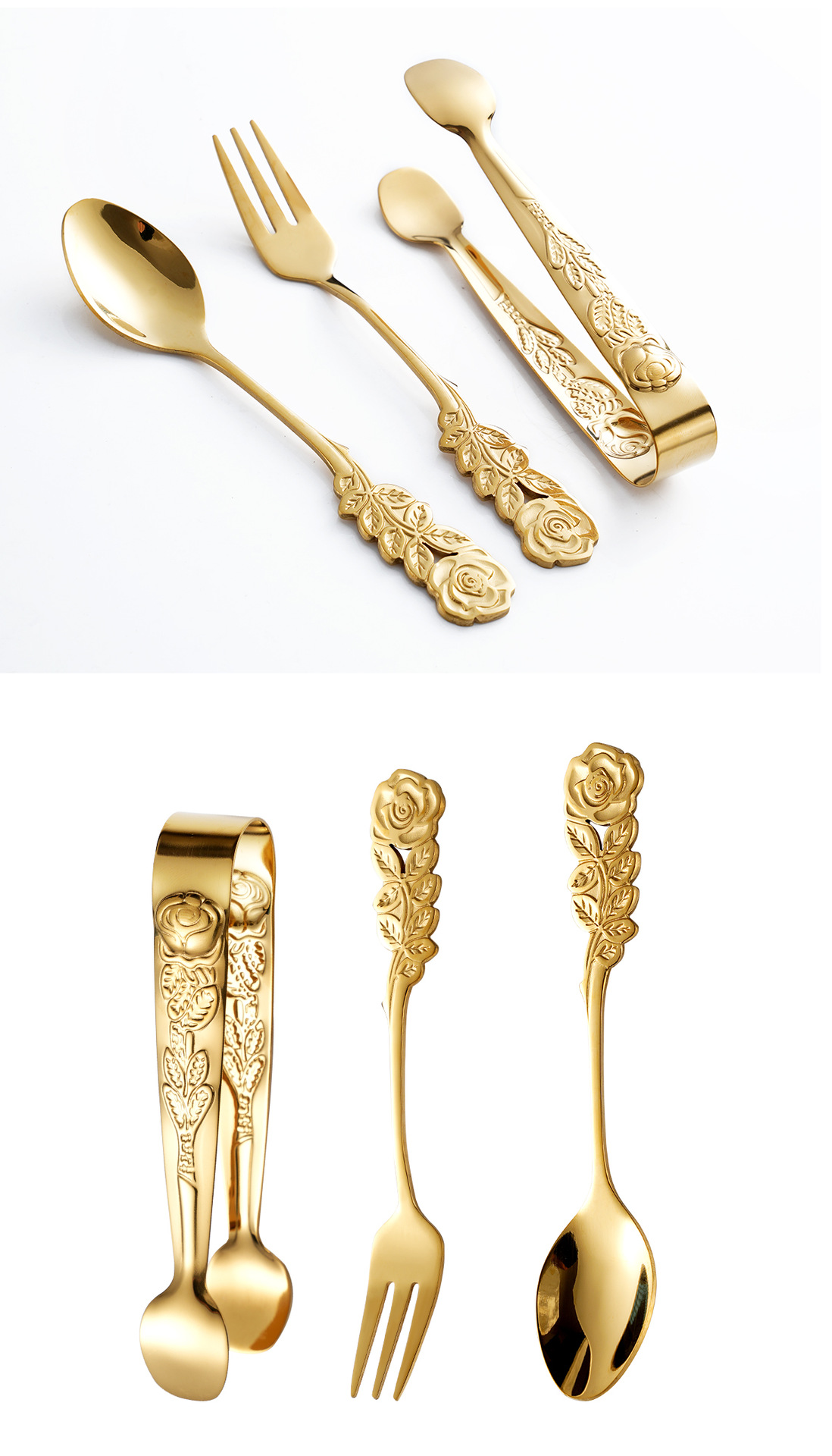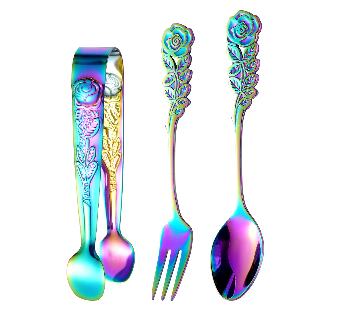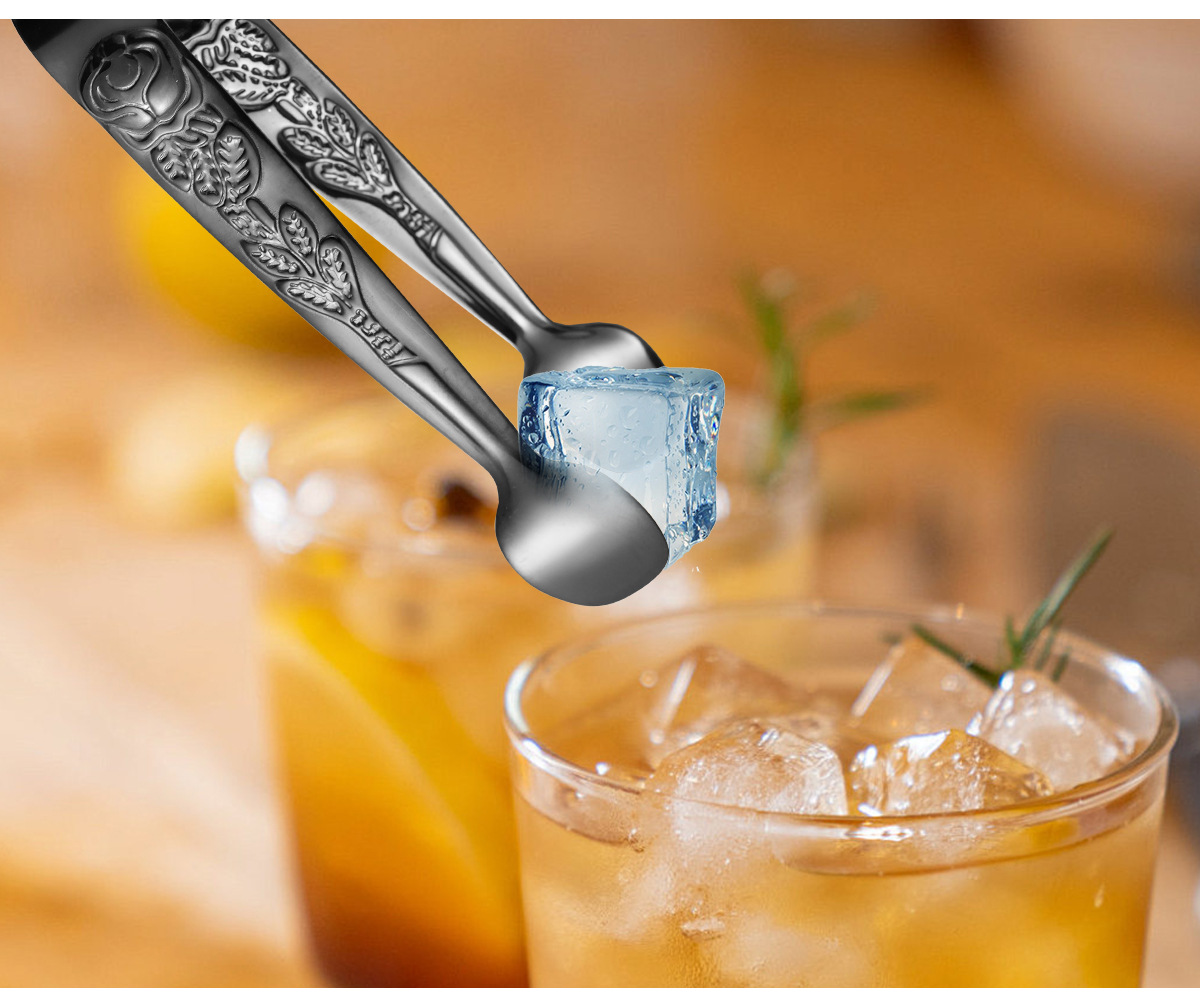 cross-border stainless steel rose ice clip spoon fork set vintage pattern coffee spoon cube sugar clip dessert fork 中文版