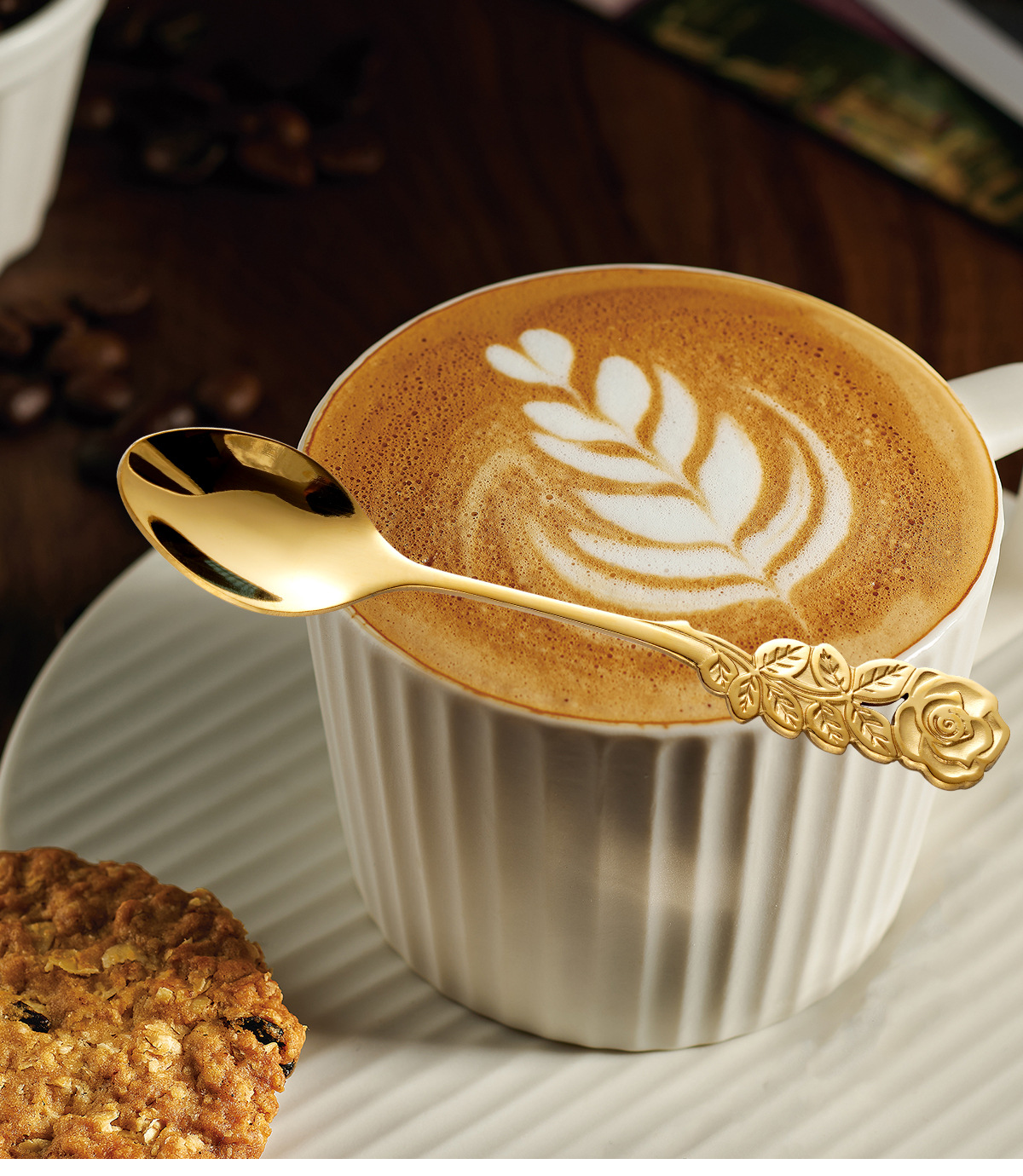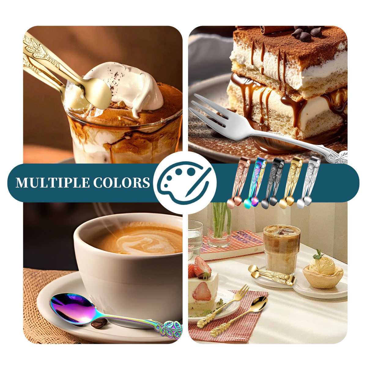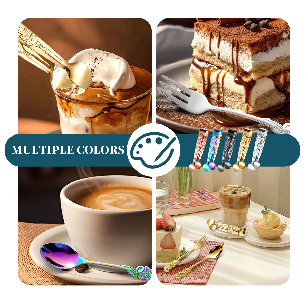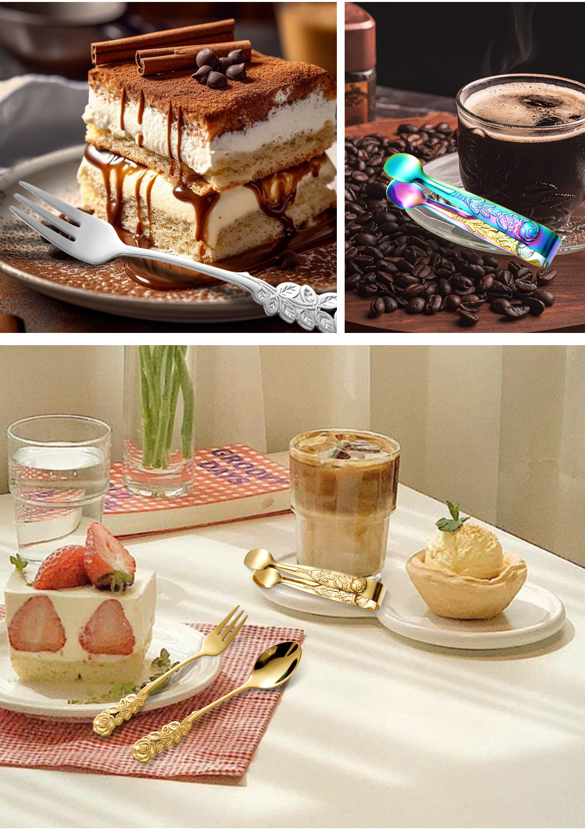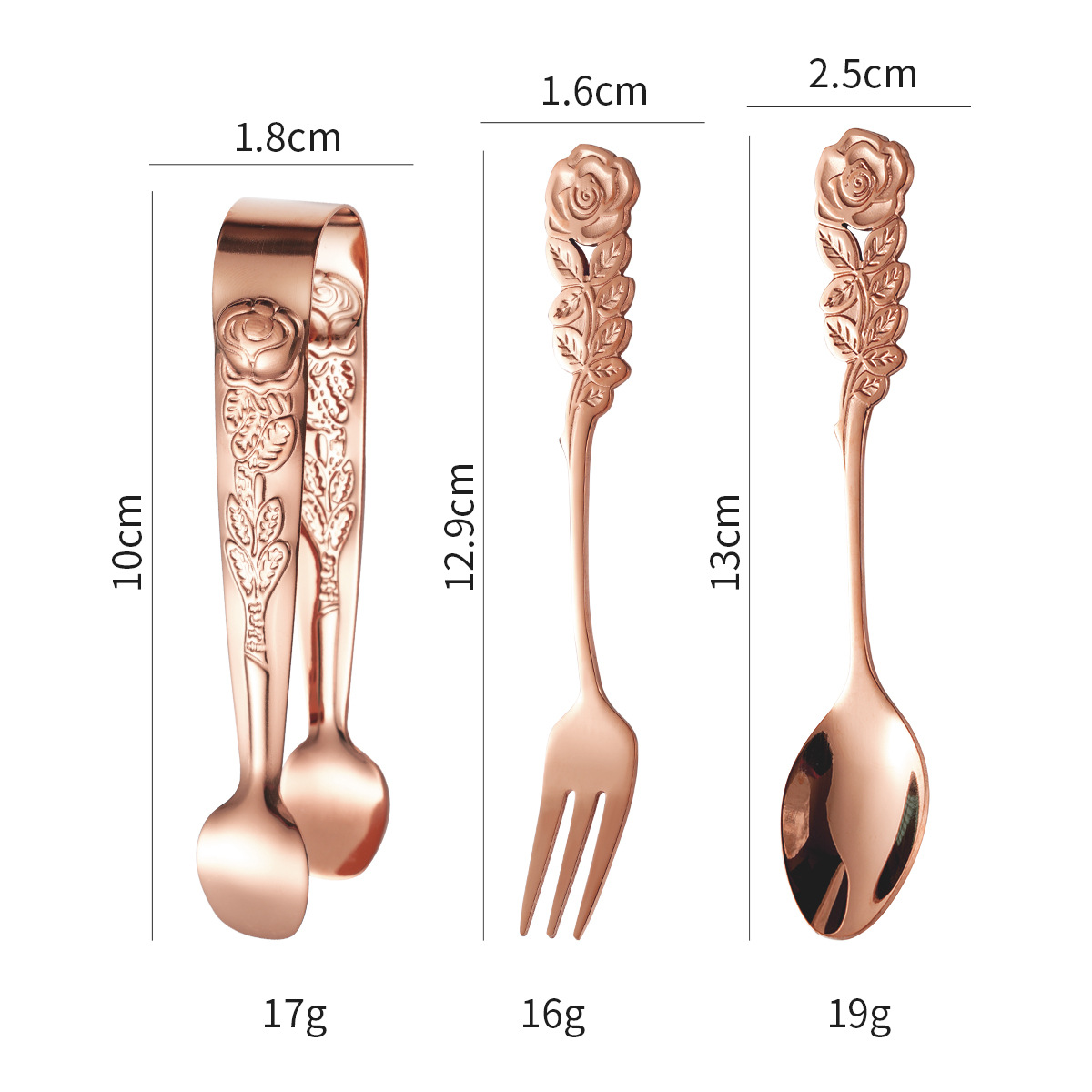 cross-border stainless steel rose ice clip spoon fork set vintage pattern coffee spoon cube sugar clip dessert fork 中文版