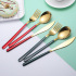 korean stainless steel knife, fork and spoon household internet celebrity western food/steak knife, fork and spoon suit 304 stainless steel green gold knife and fork 中文版