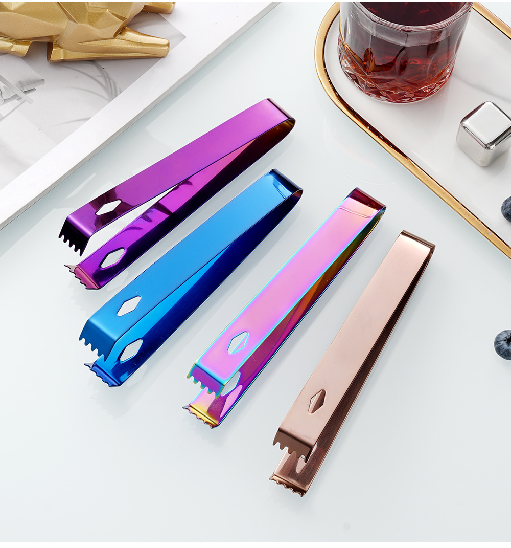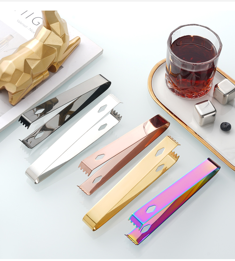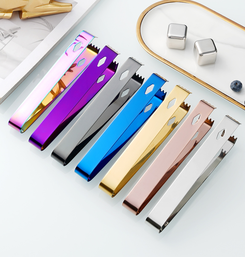 cross-border 304 stainless steel ice clip metal thickening cube sugar tong bar wine mixer square hole with teeth little clip towel clamp 中文版