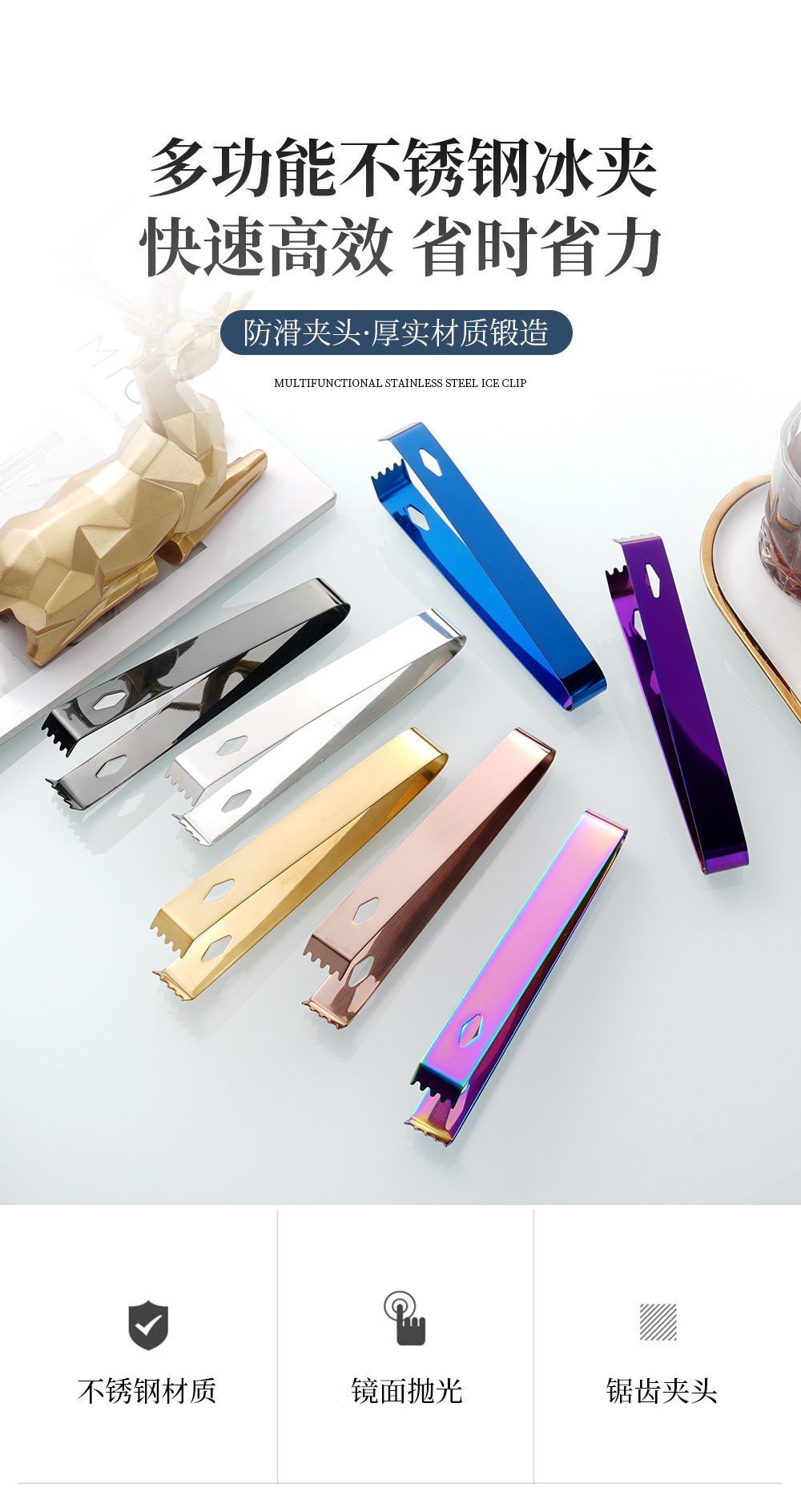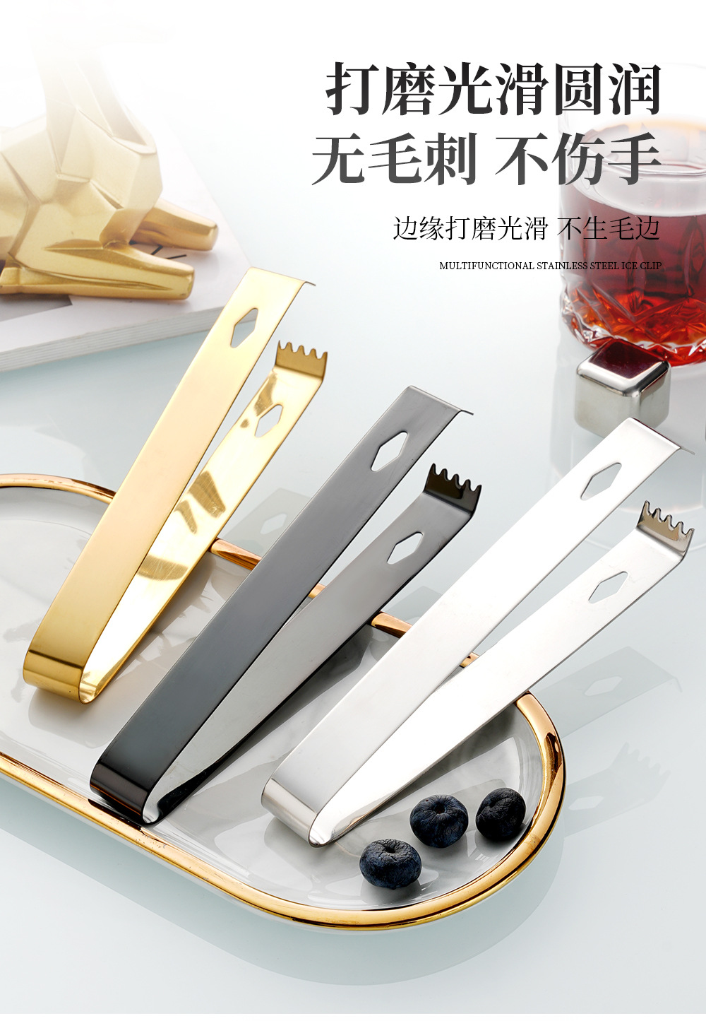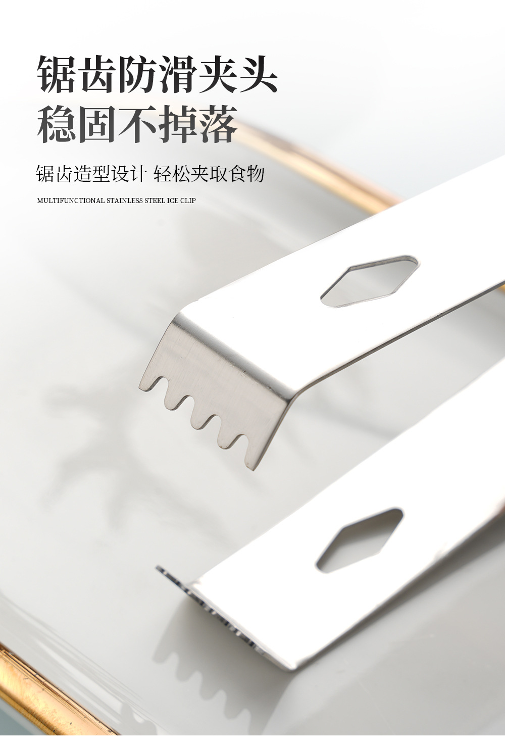 cross-border 304 stainless steel ice clip metal thickening cube sugar tong bar wine mixer square hole with teeth little clip towel clamp 中文版
