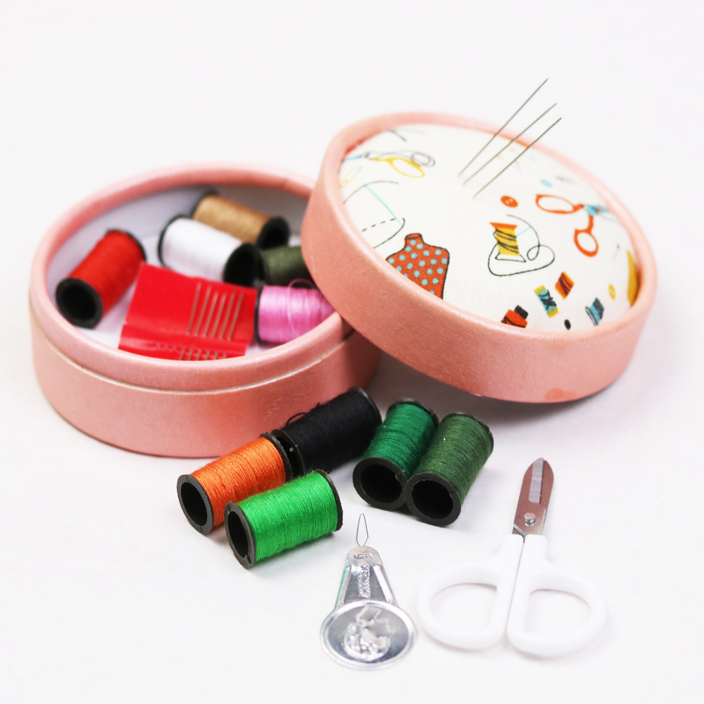 household sewing kit sewing kit round portable pin storage box sewing handmade diy box practical sewing kit 中文版