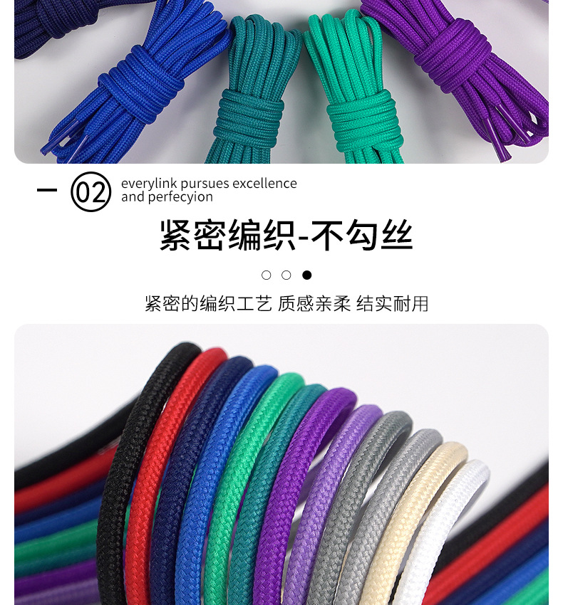 6mm round shoelace fit coconut shoes non-slip outdoor mountaineering casual shoes black and white shoelace 中文版