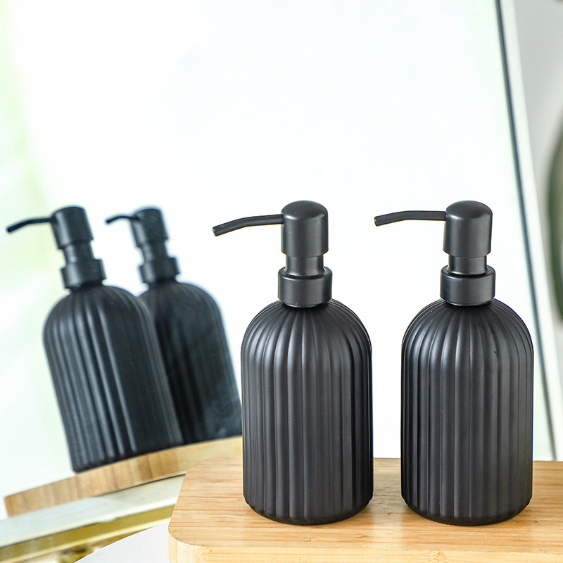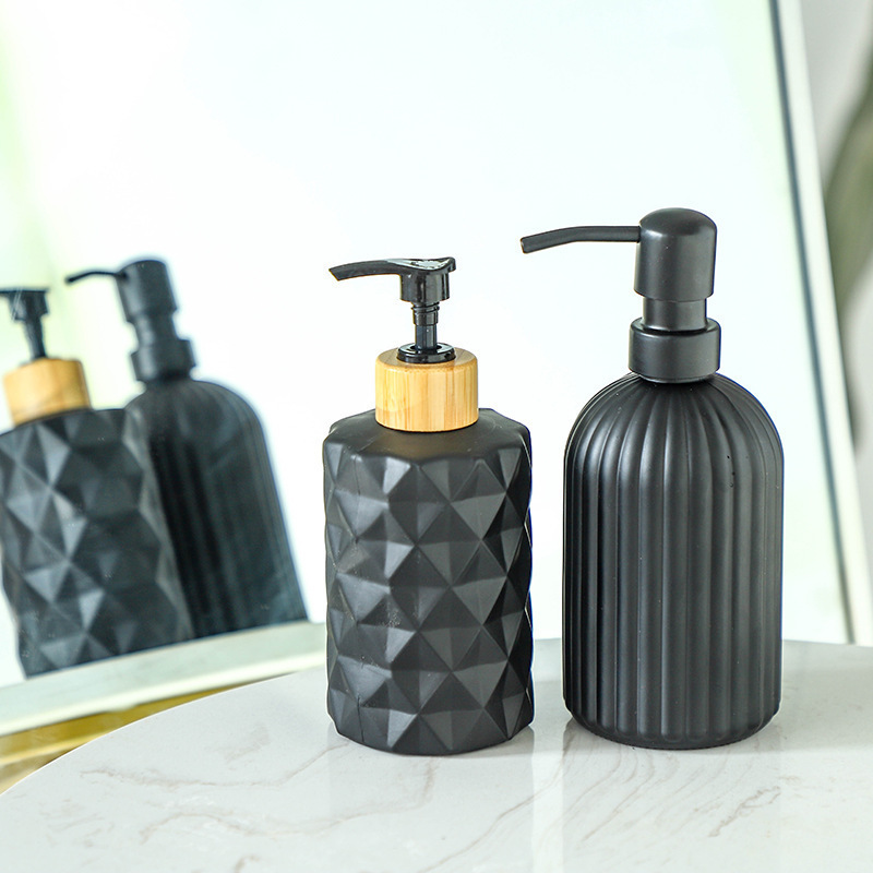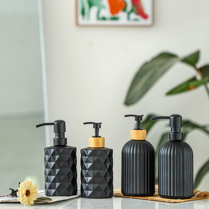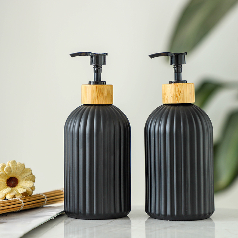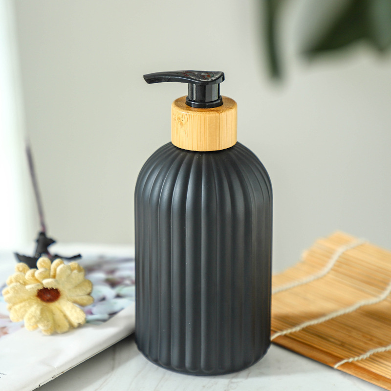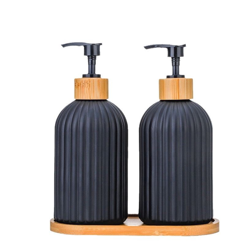 -; vertical matte black + bamboo ring press pump