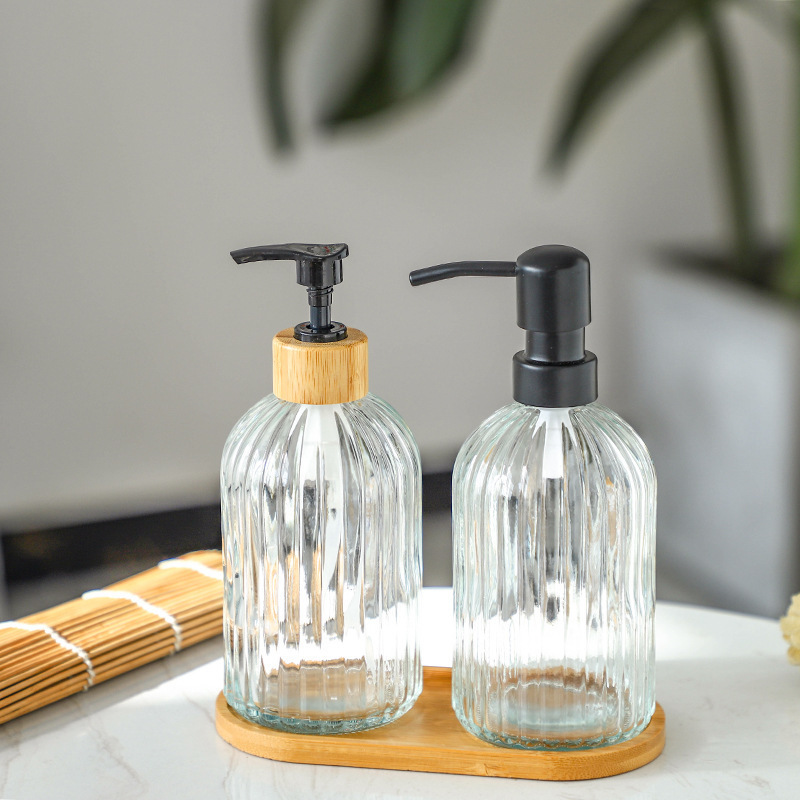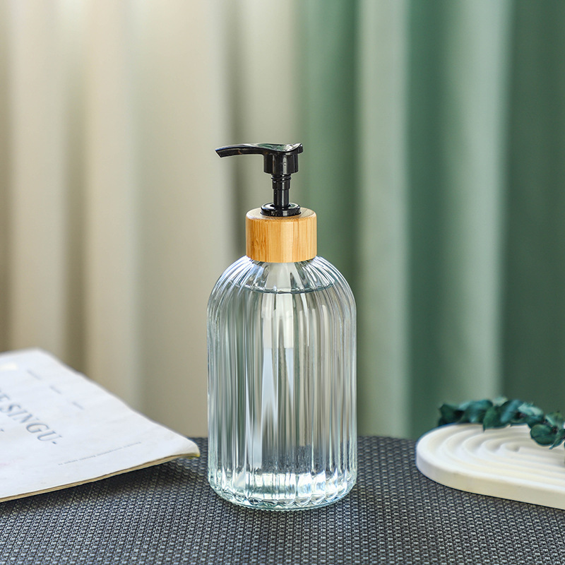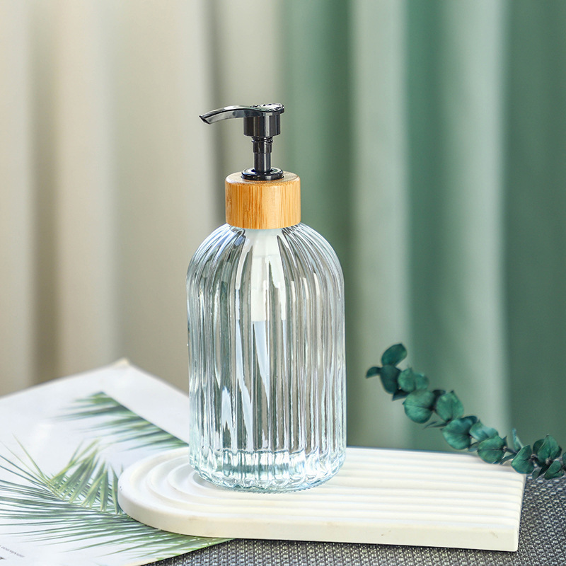 -; vertical transparent + bamboo ring press pump