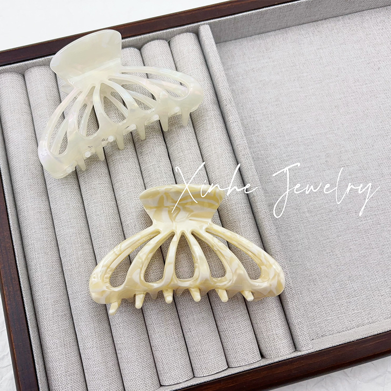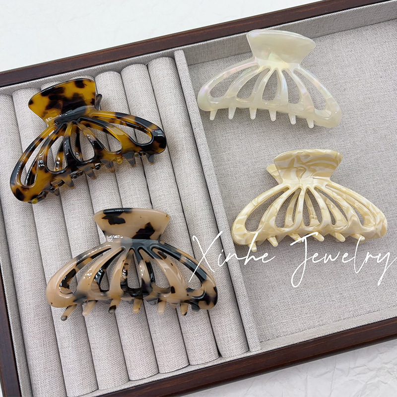 xiwen ornament ornament acetate hair accessories large grip caramel milk tea color dignified hollow hair claw female shark clip 中文版