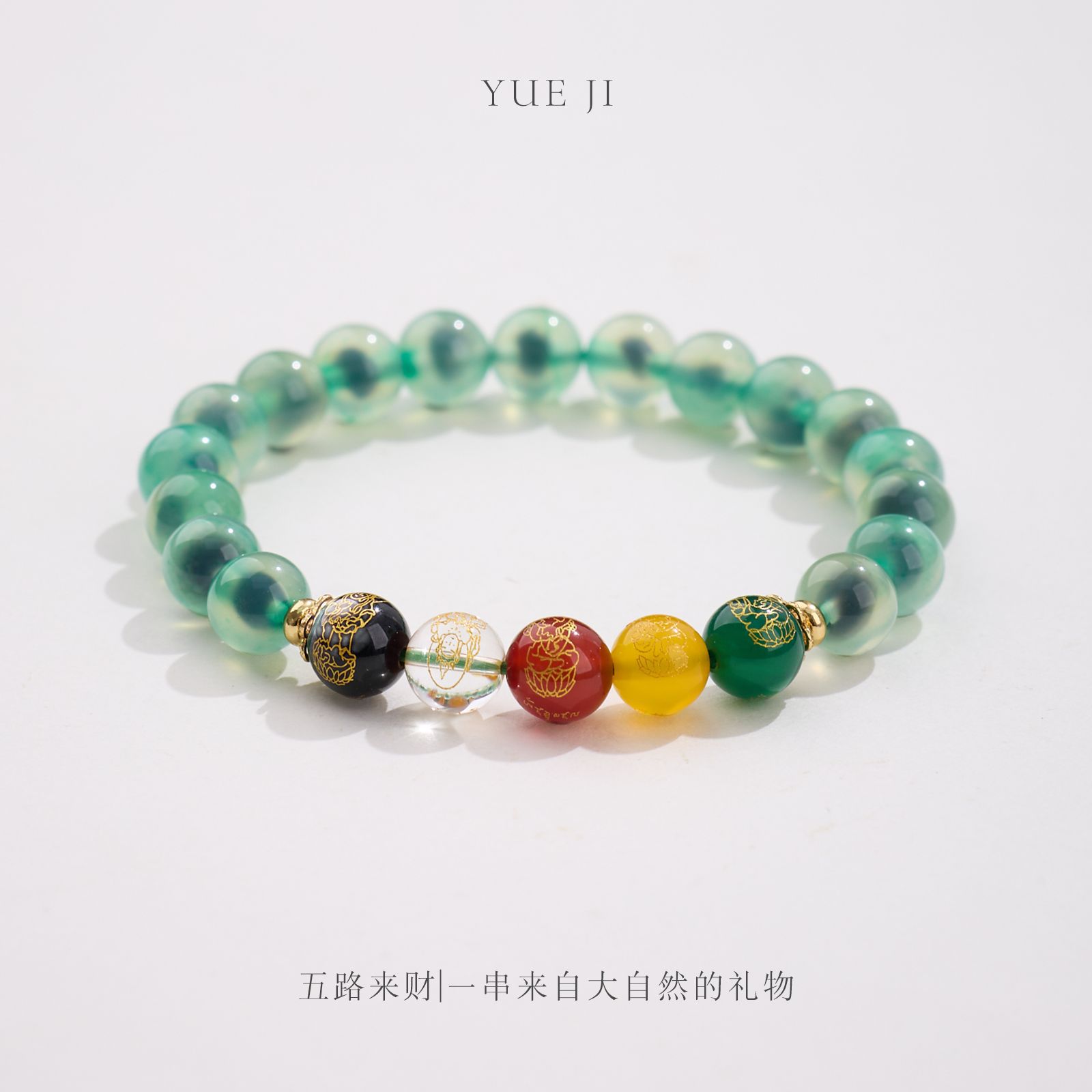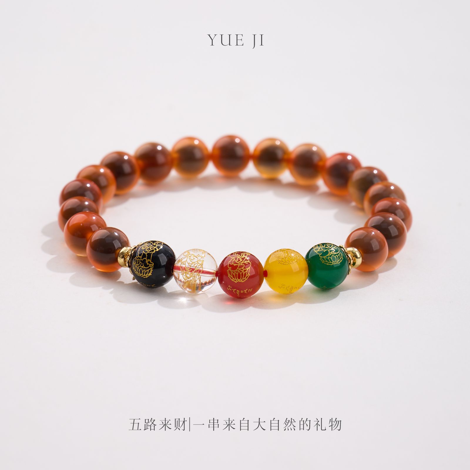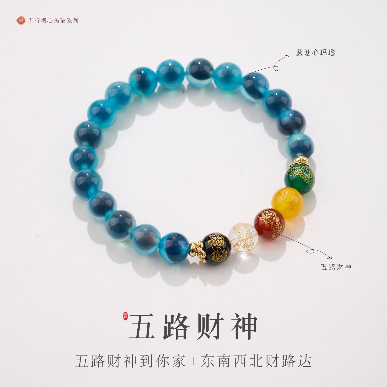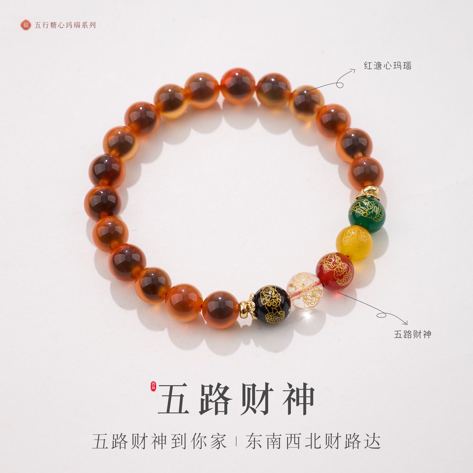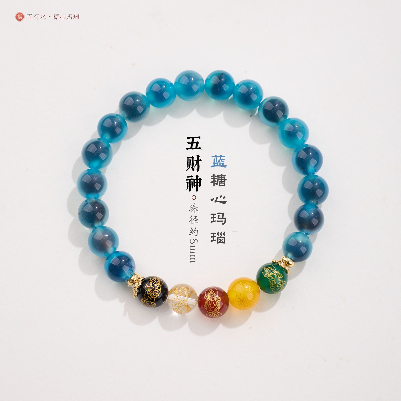 8MM Sugar Heart Agate Five Fortune Gods Five Elements Bracelet