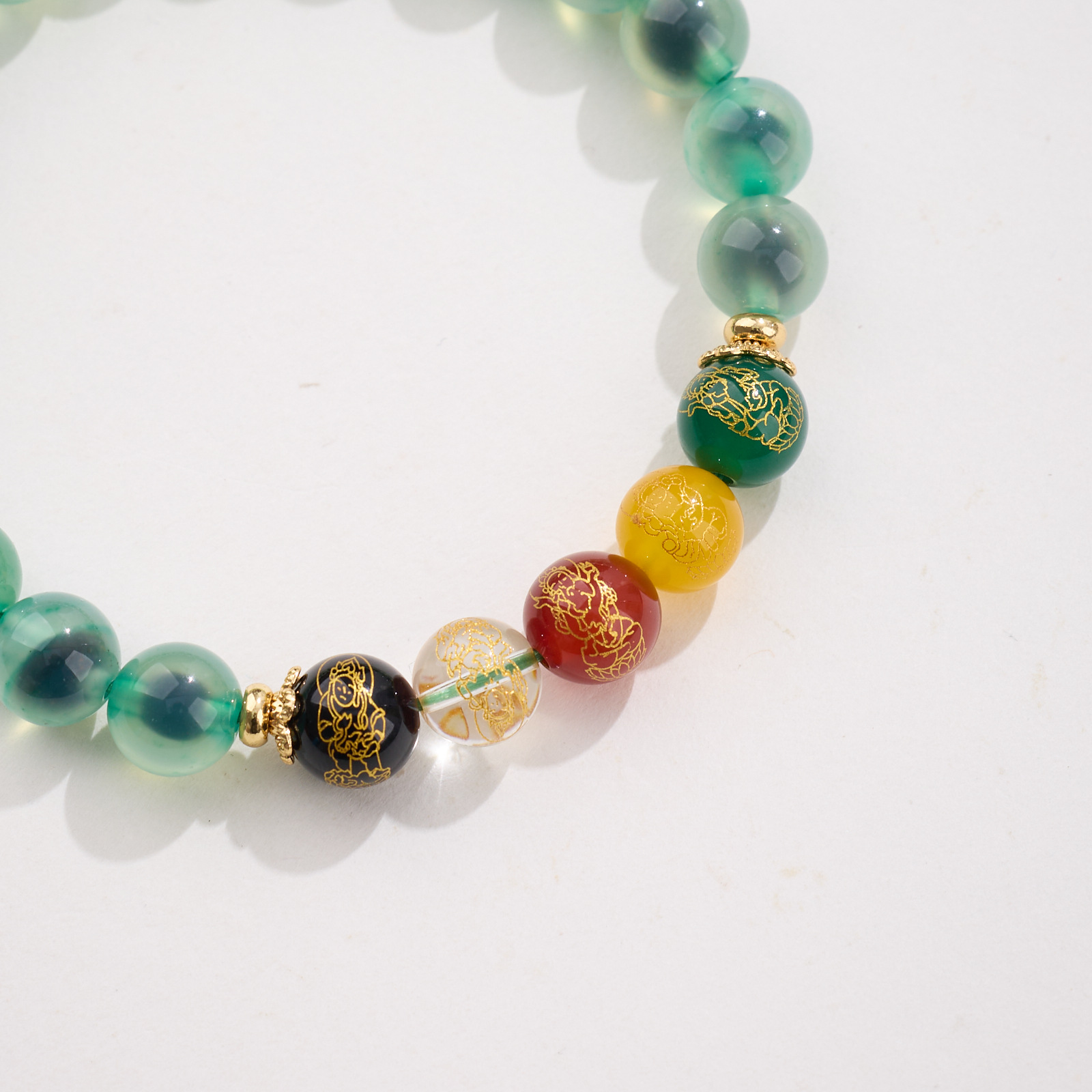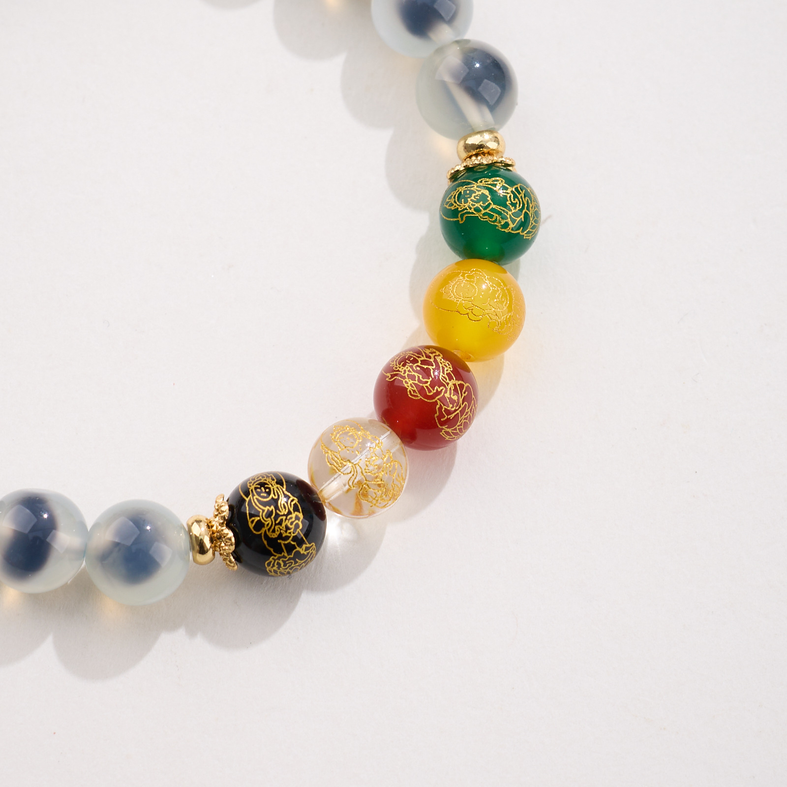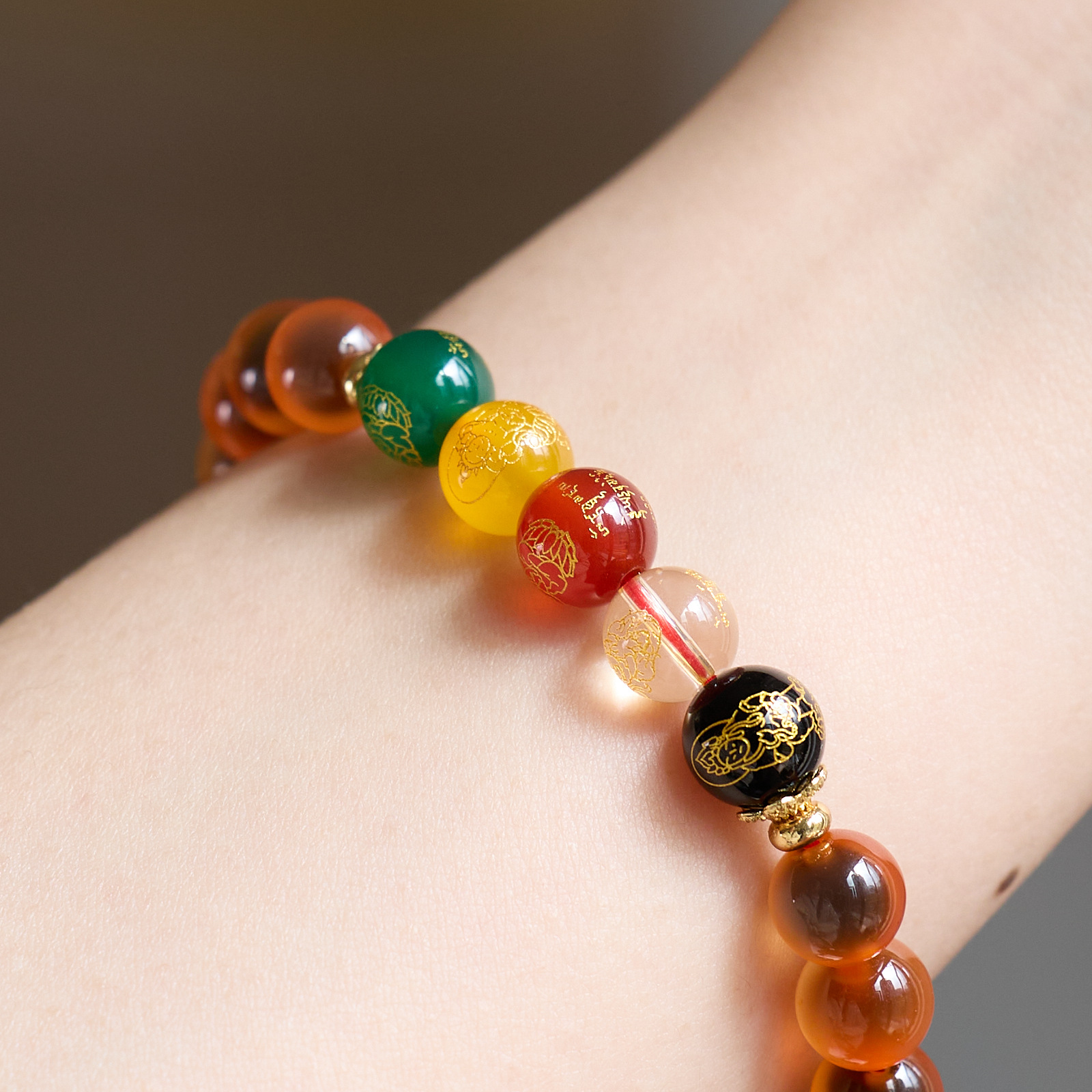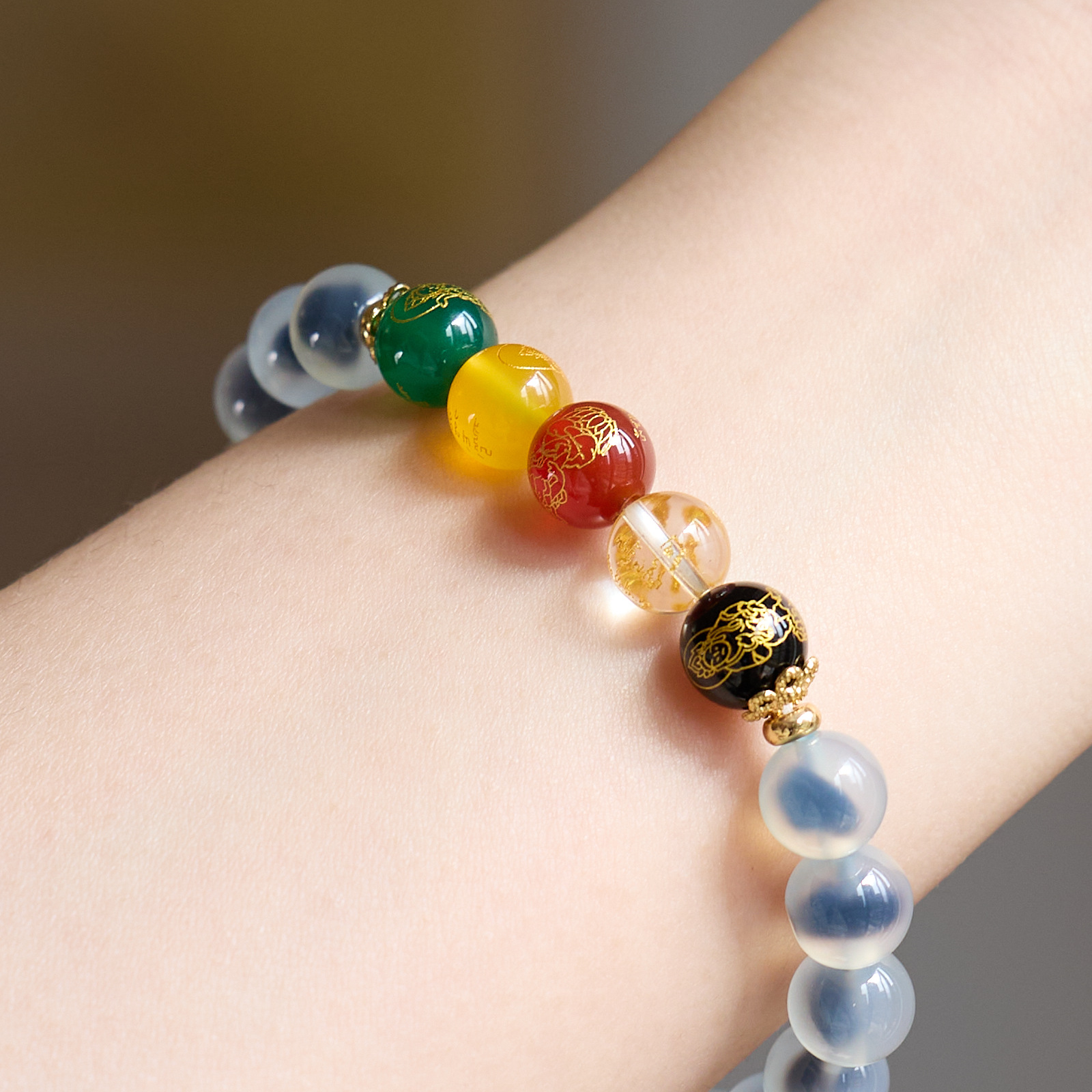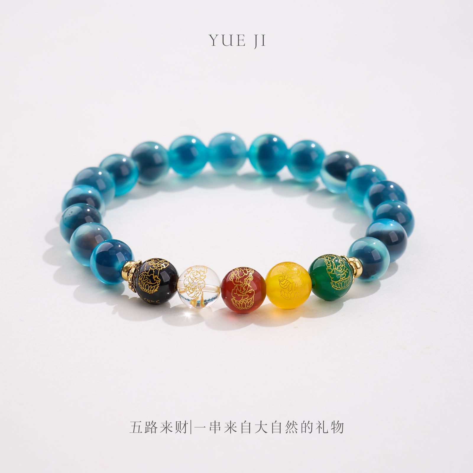 8MM Sugar Heart Agate Five Fortune Gods Five Elements Bracelet