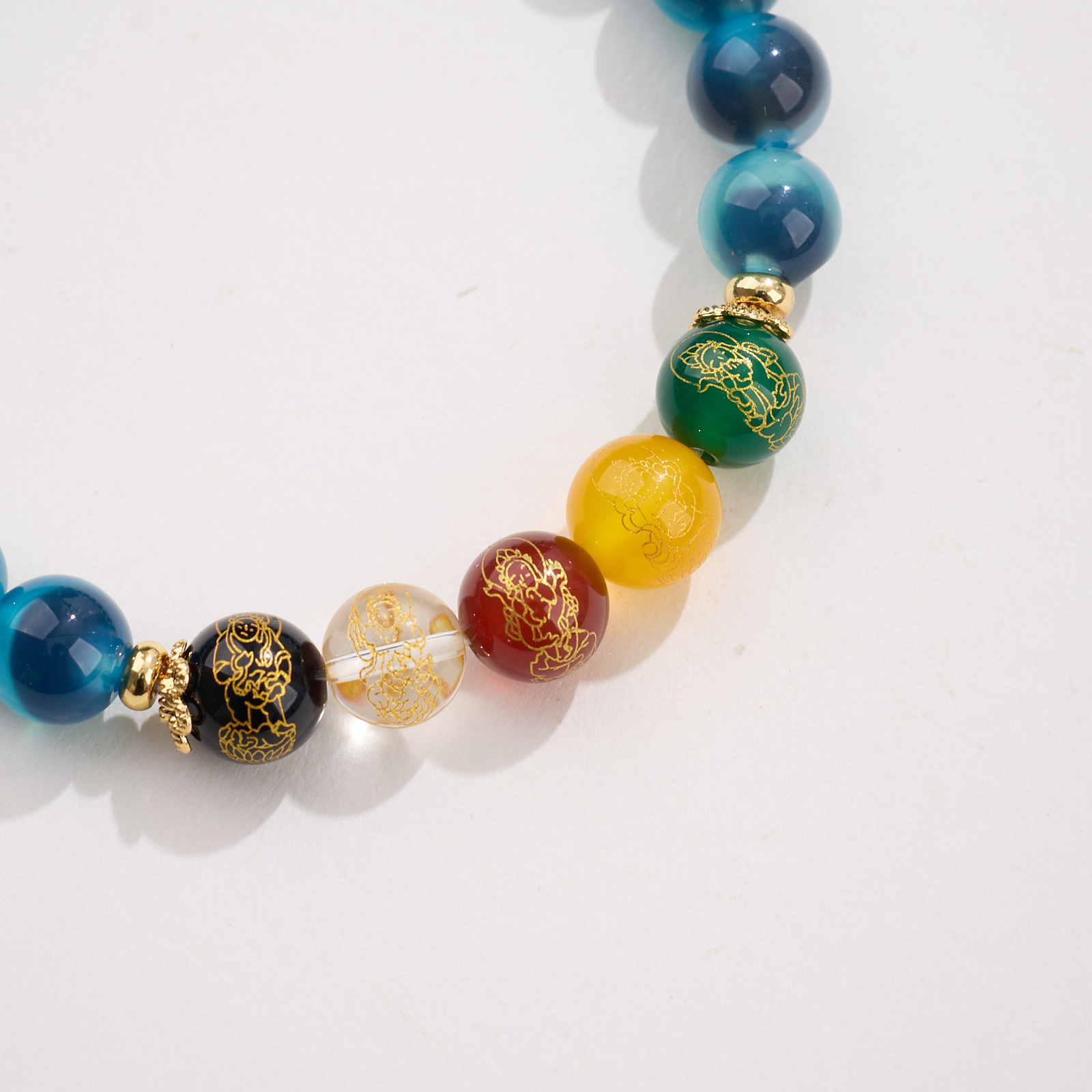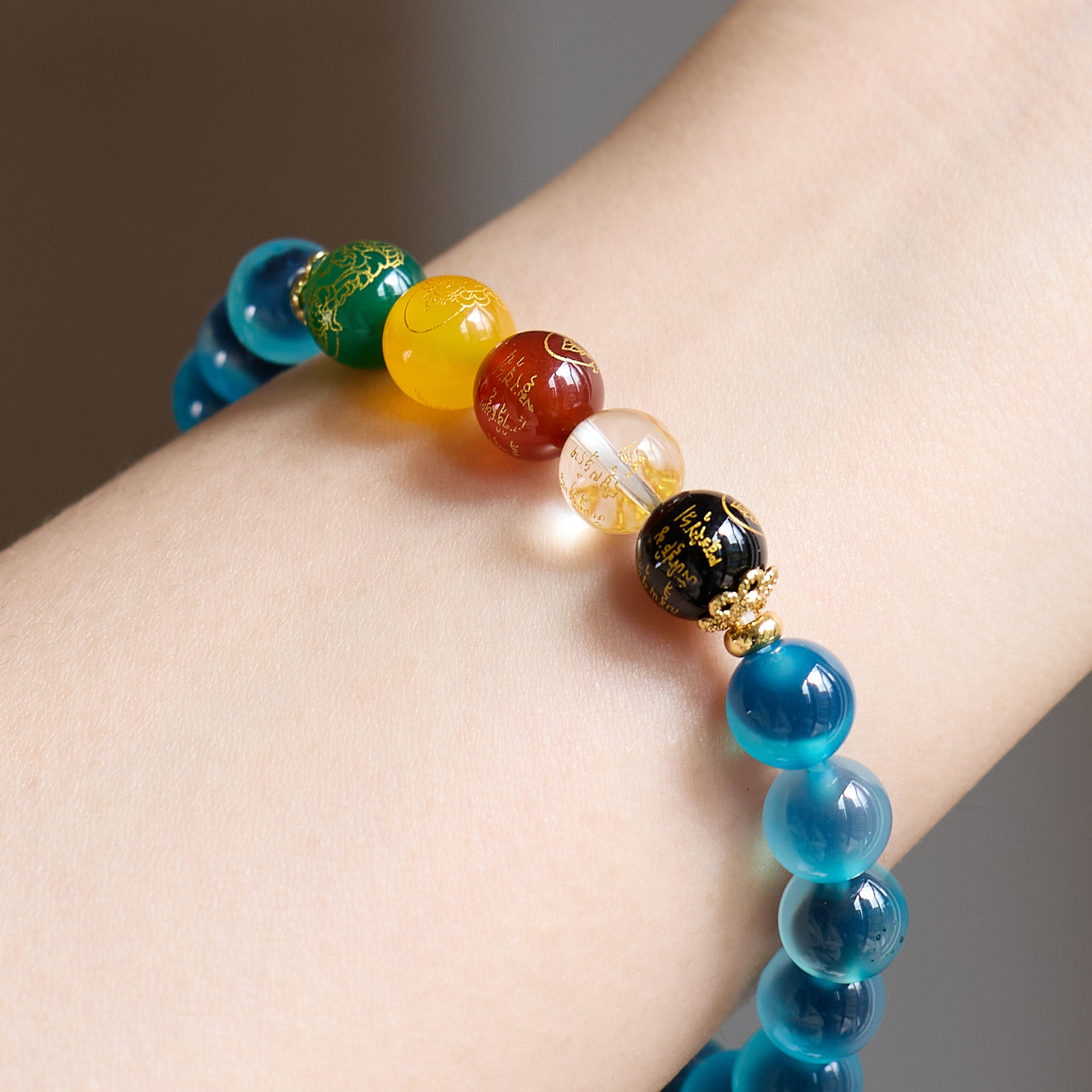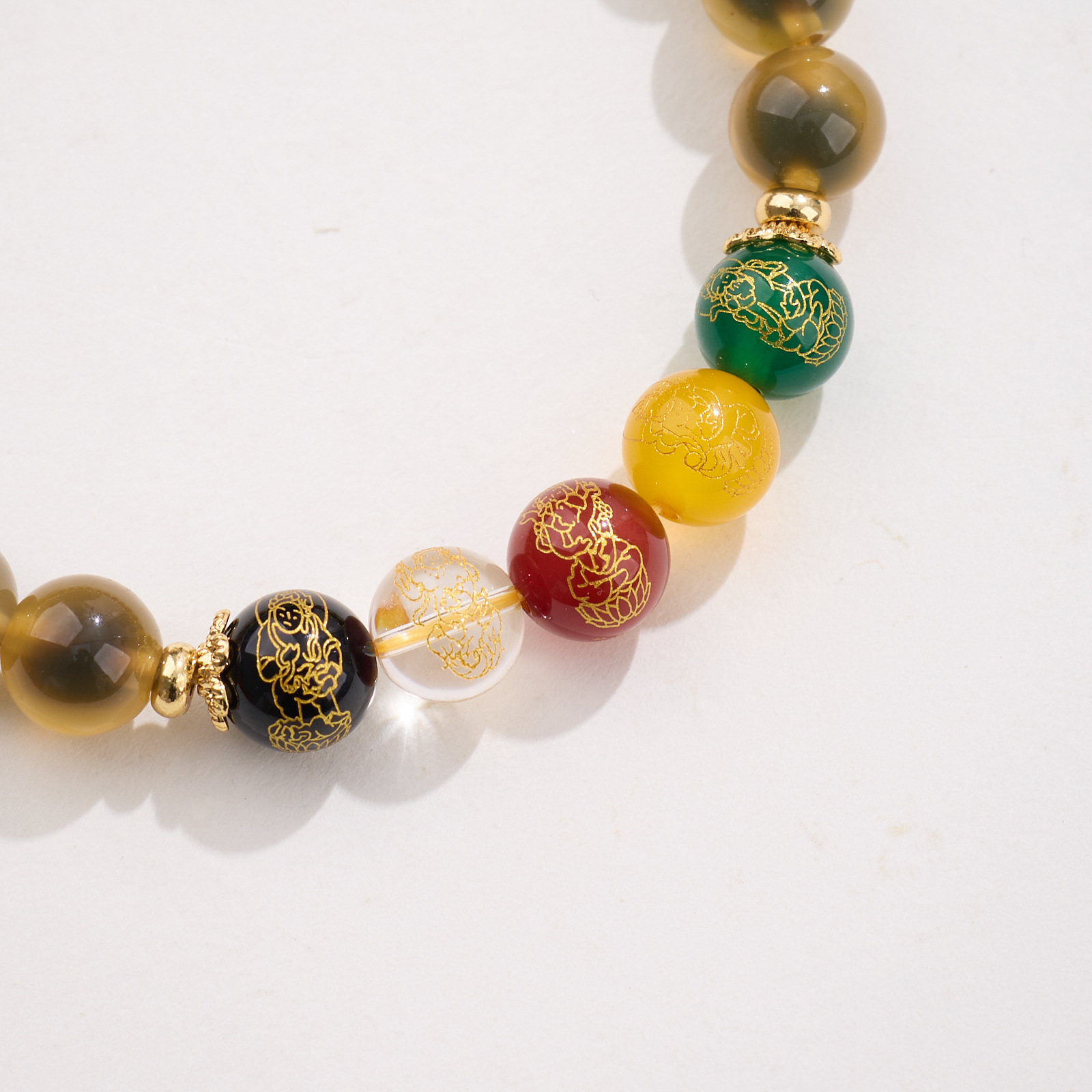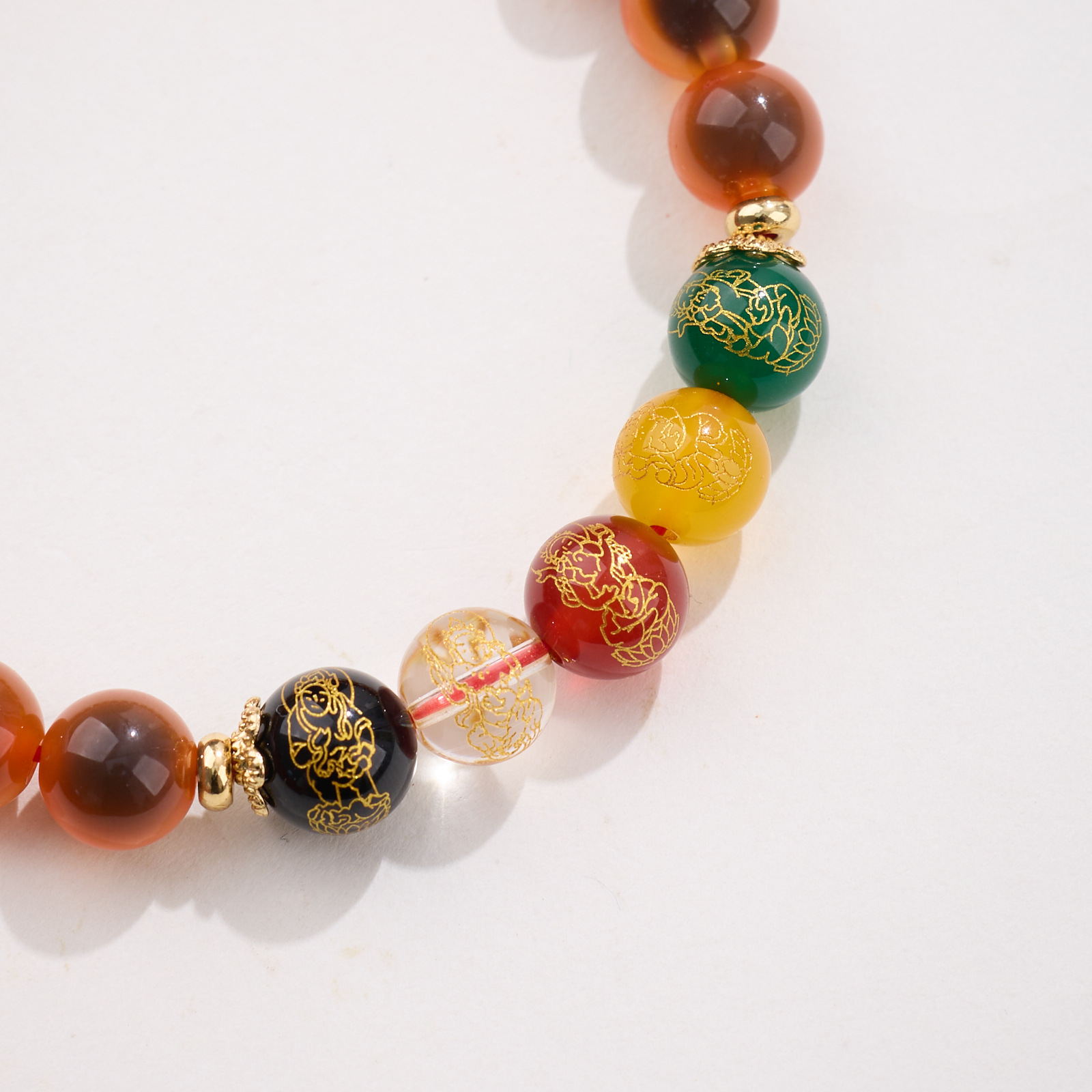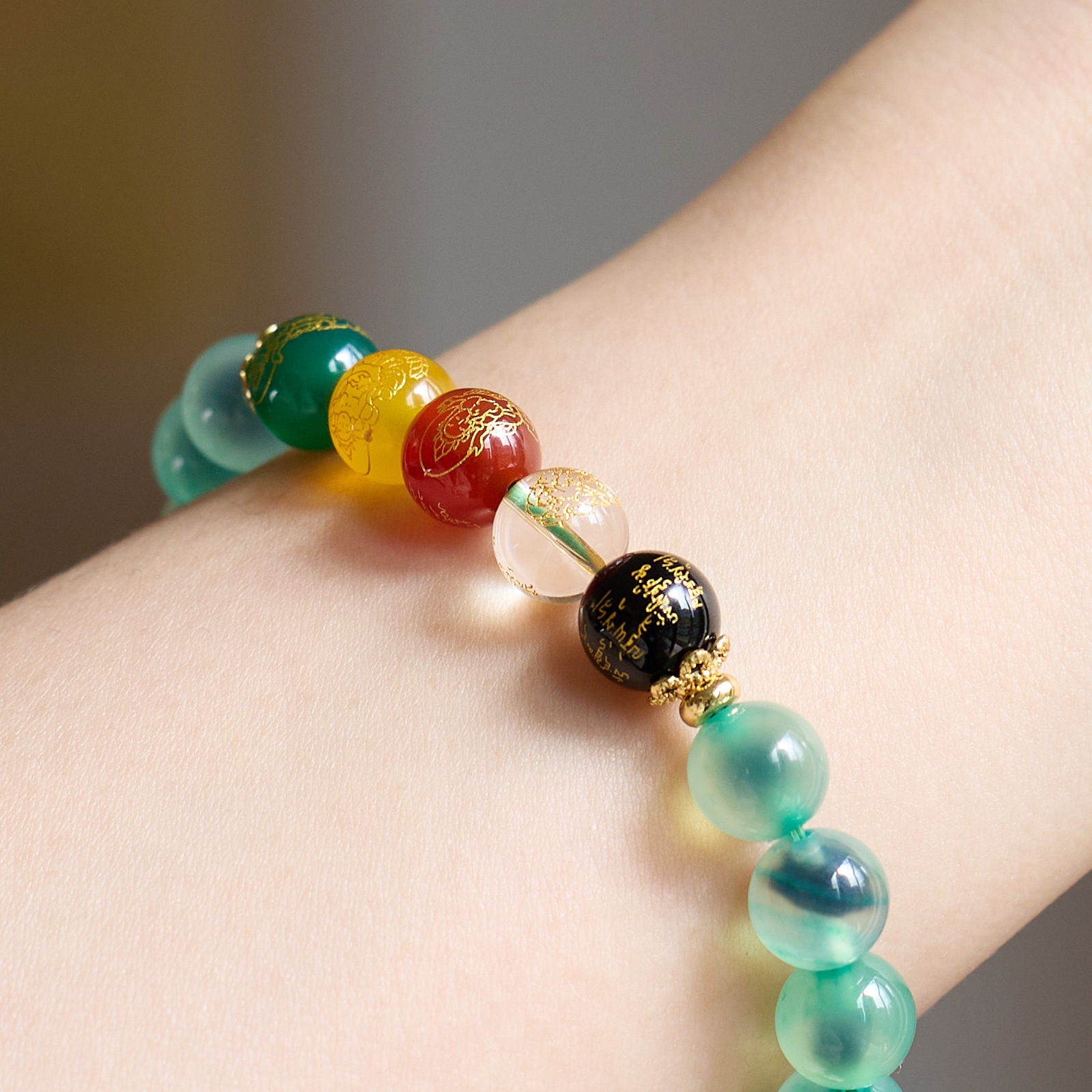 8MM Sugar Heart Agate Five Fortune Gods Five Elements Bracelet
