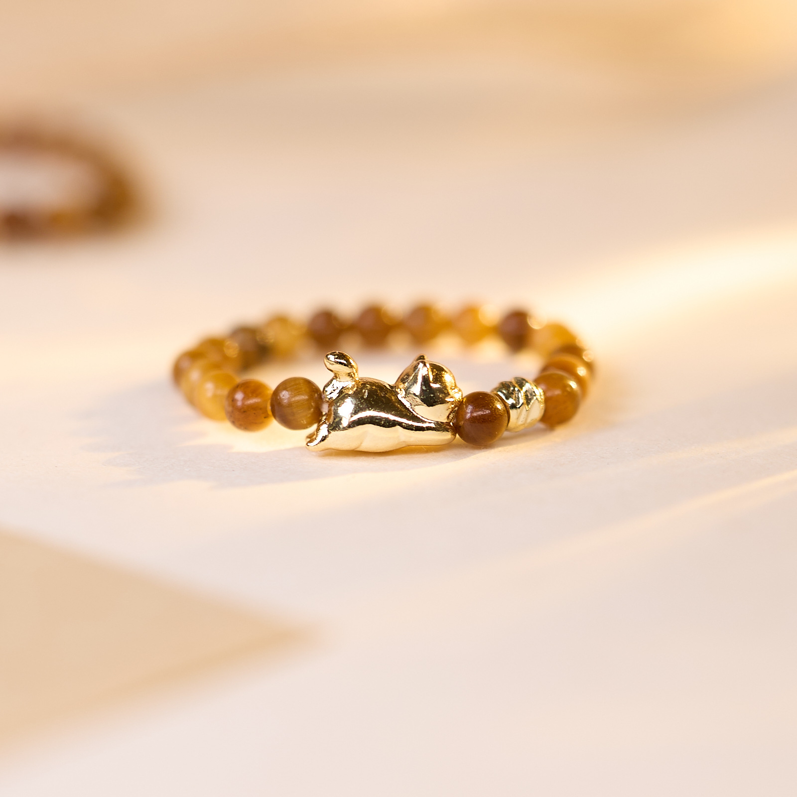 [golden meow nafu] 3mm tigereye crepe bead kitten ring