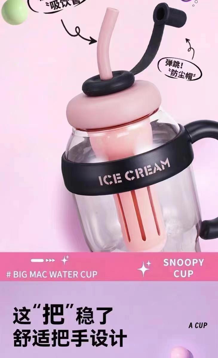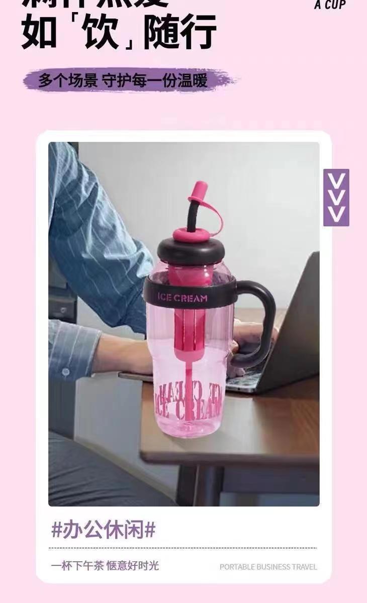 New large capacity ice king cup with portable handle and straw for men and women students and athletes, high-quality water cup with good looks.