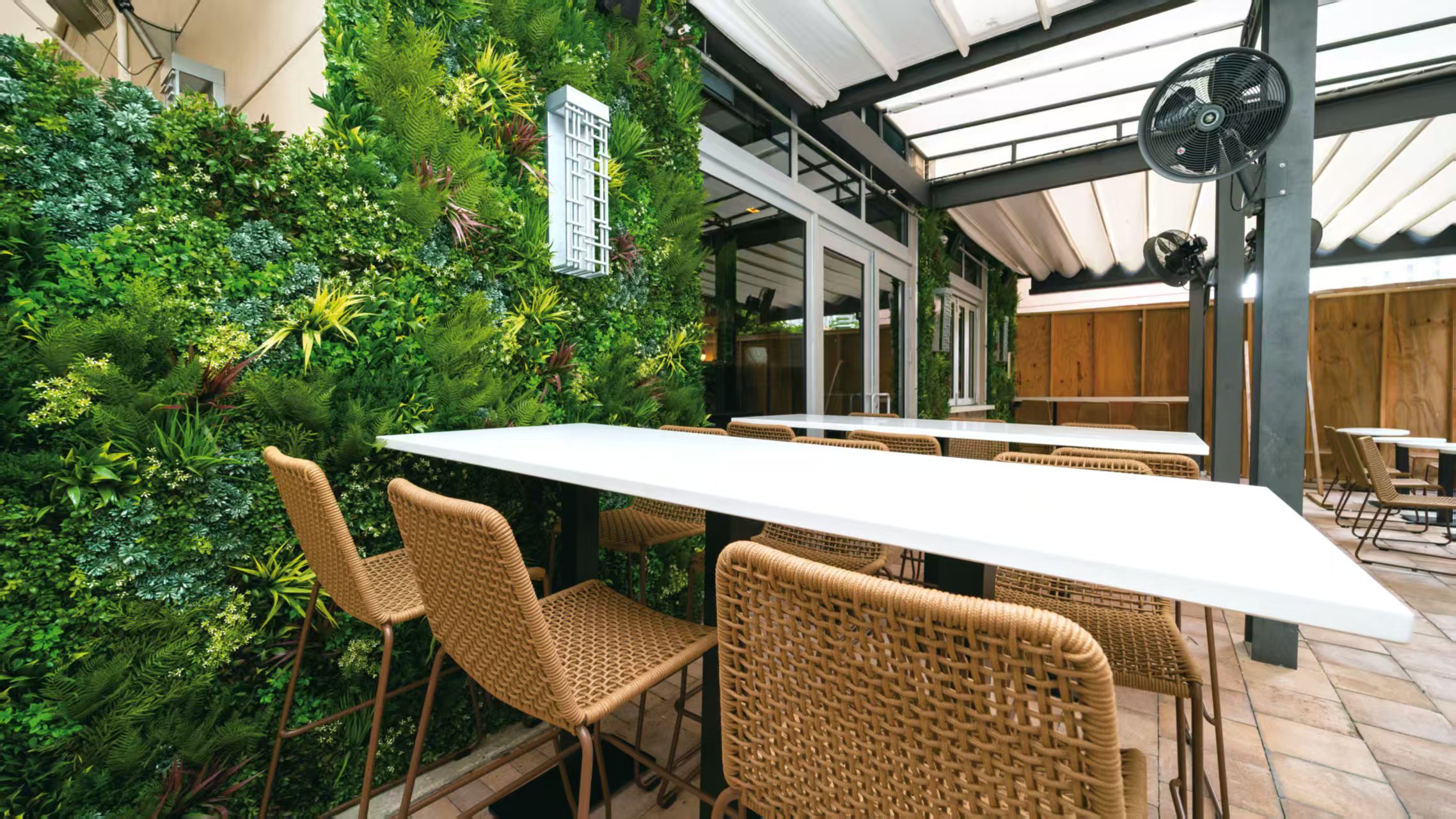 Urban space three-dimensional greening background with high-fidelity simulation plant wall, suitable for commercial building exterior wall decoration, with the ability to freely cut and tailor.