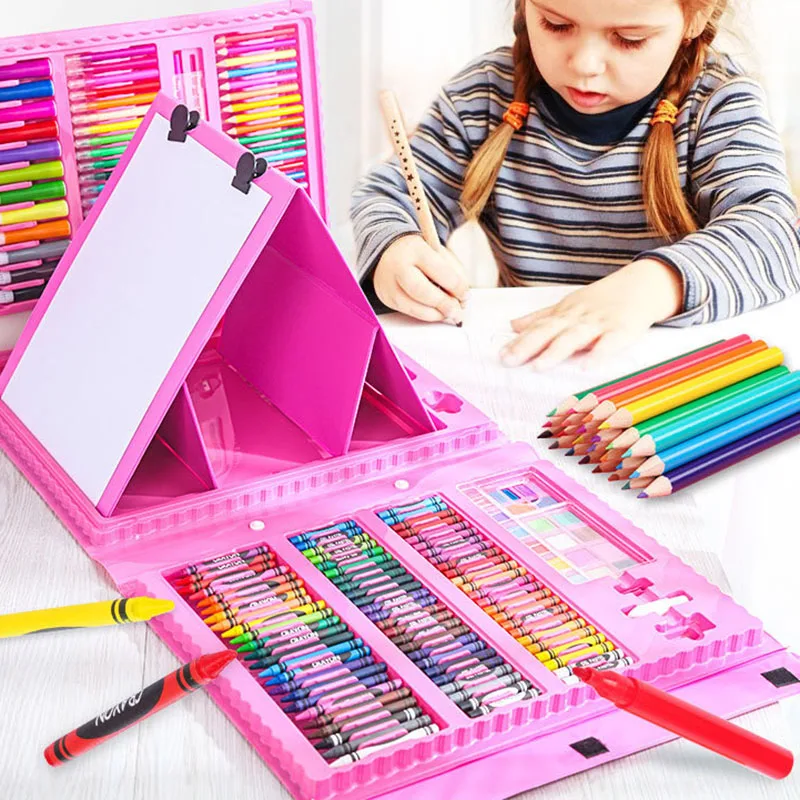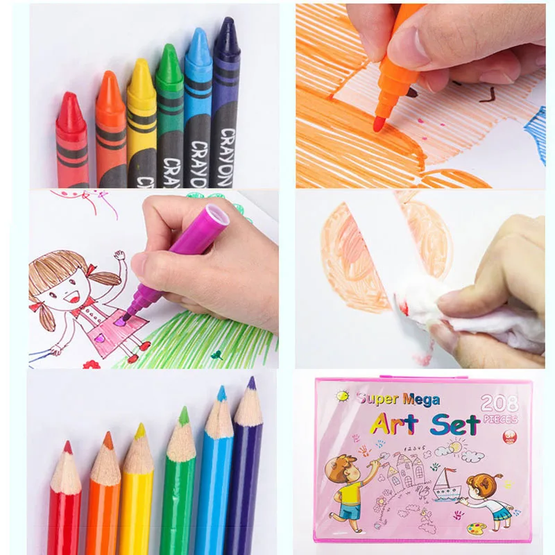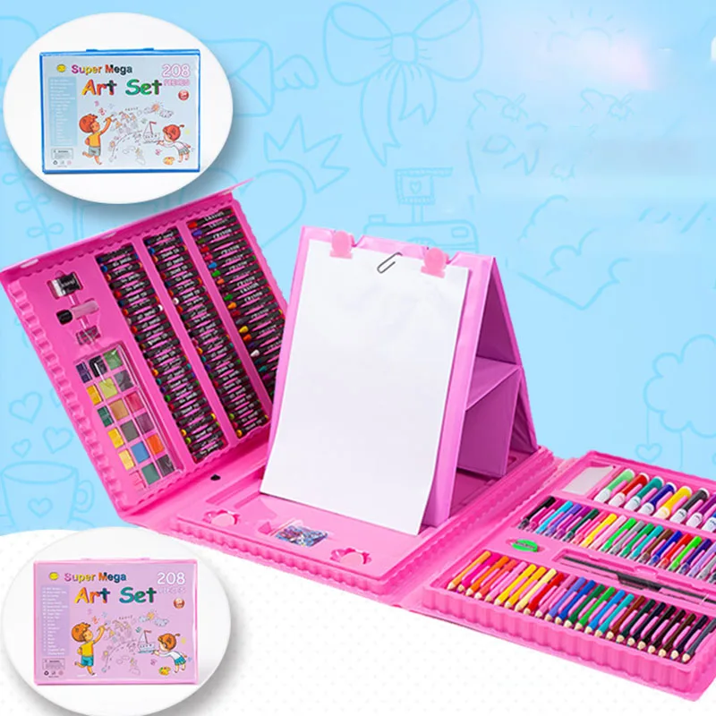208 Pcs Watercolor Crayons Set Non Toxic Colored Art Painting Crayons With Easel for Kids Gift Box Set
