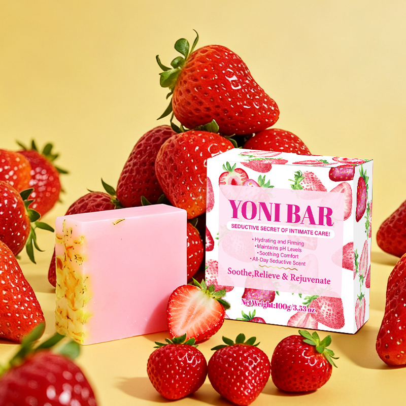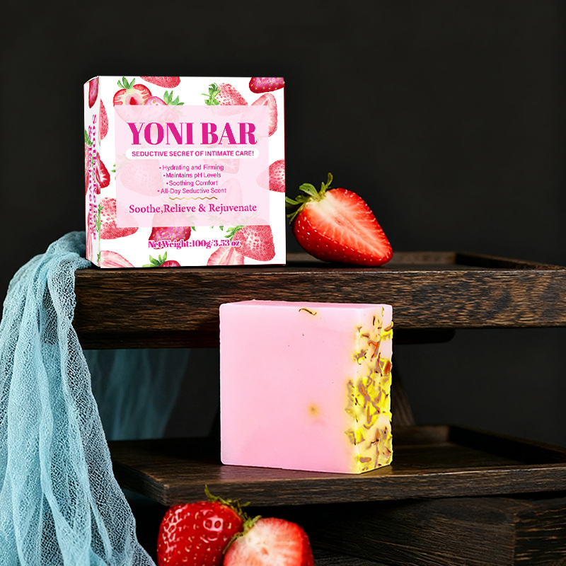 cross-border foreign trade pure english strawberry private soap yoni soap essential oil soap bath care handmade bar soap 中文版