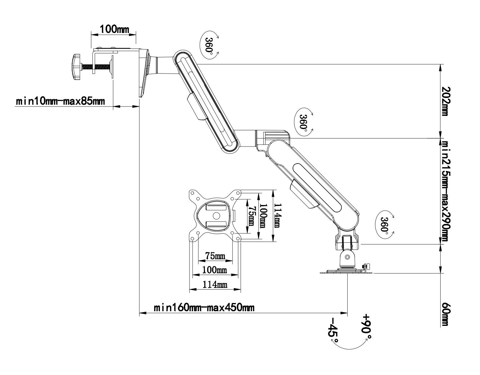 17-40 inch 12kg e-sports computer desk monitor bracket rotating arm 中文版
