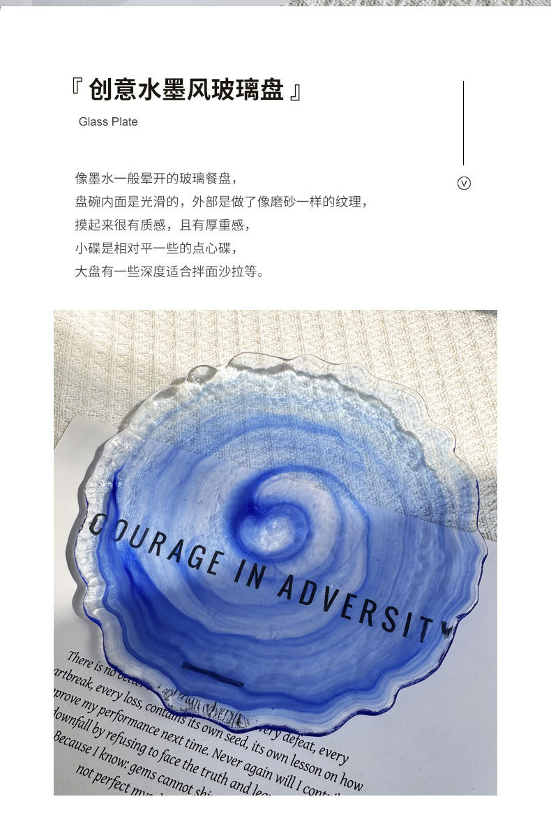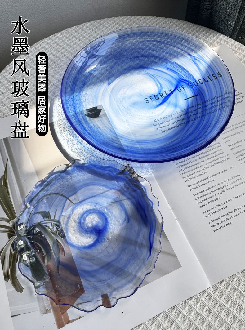 ink cloud mist plate new chinese style good-looking glass plate household creative tableware model room swing plate plate dish salad dish 中文版