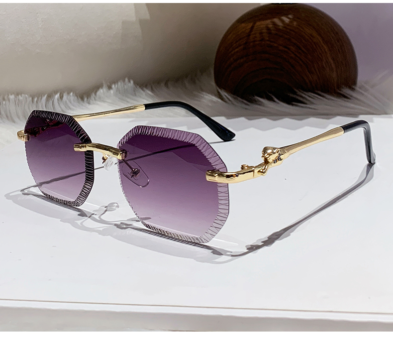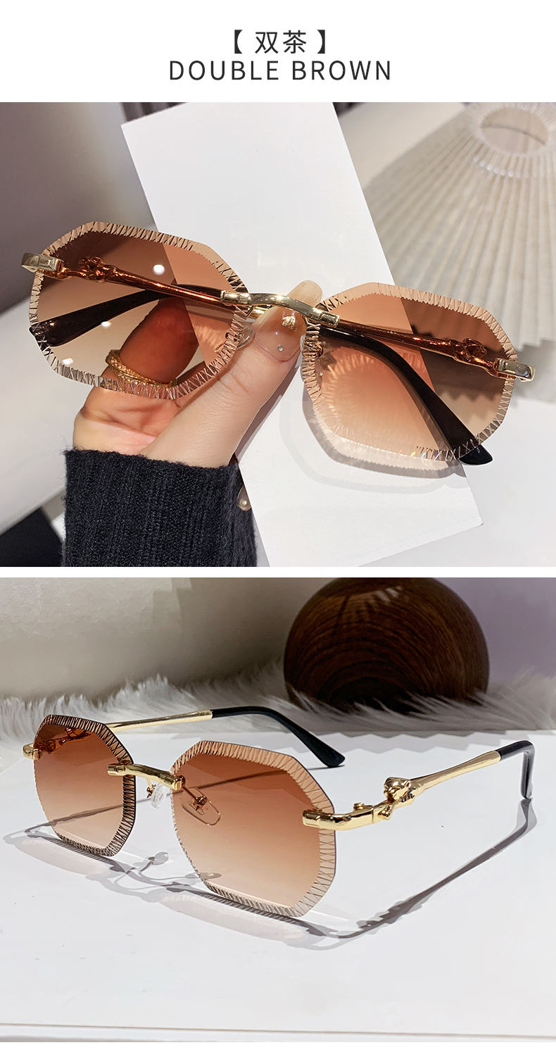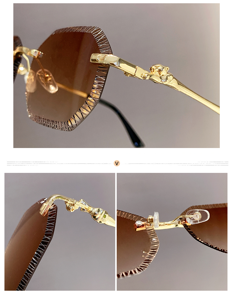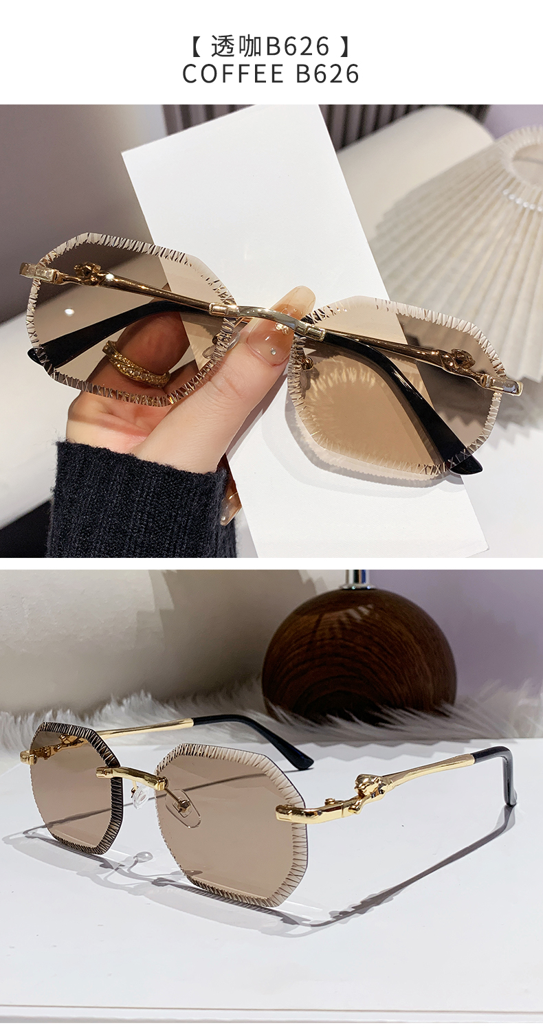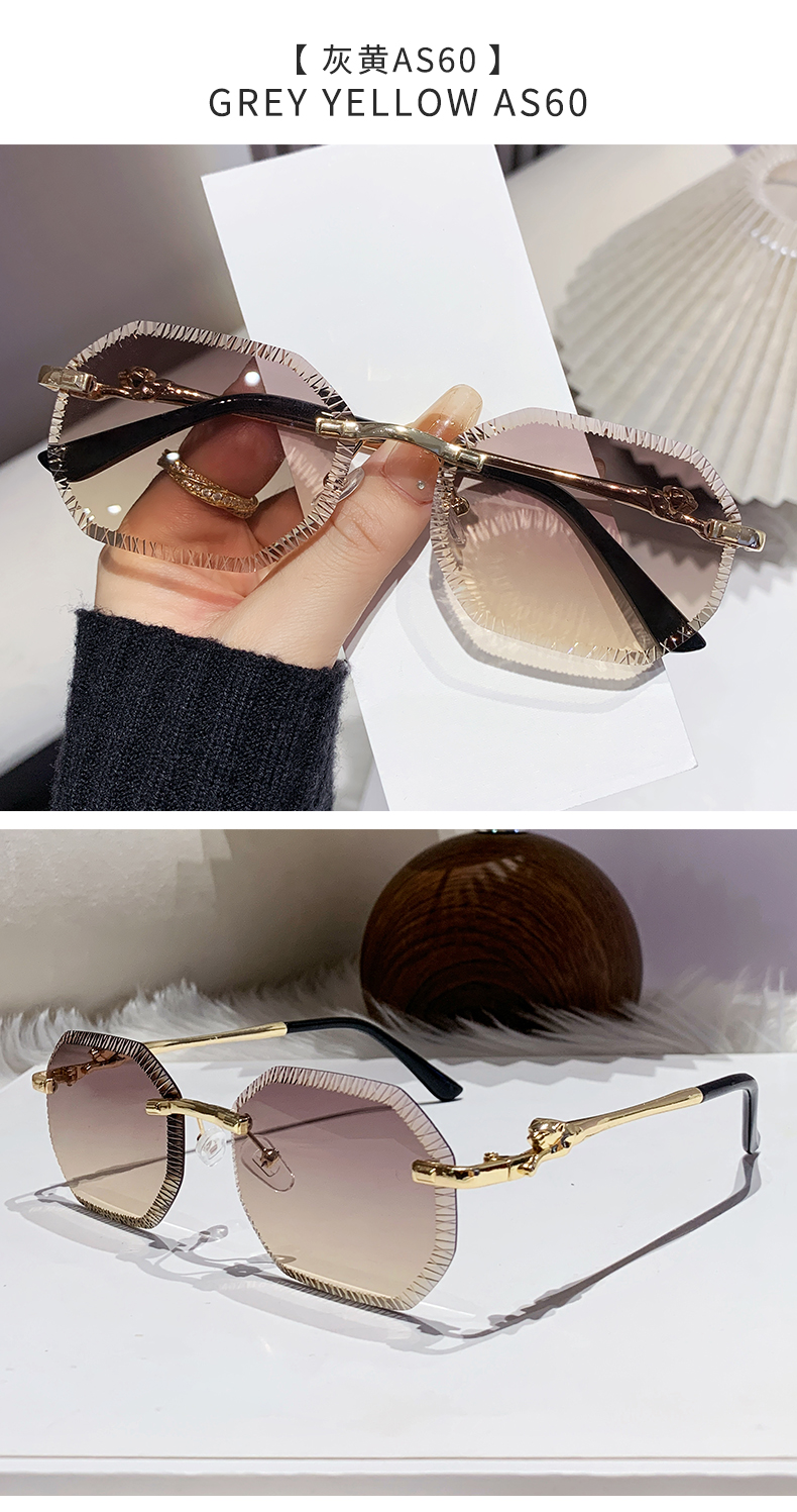 cross-border european and american fashion new style card home serrated rimless sunglasses european and american fashion leopard head metal sunglasses 90370 中文版