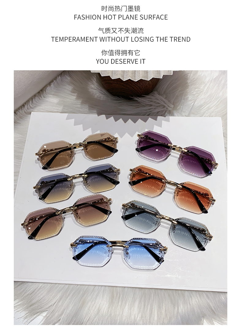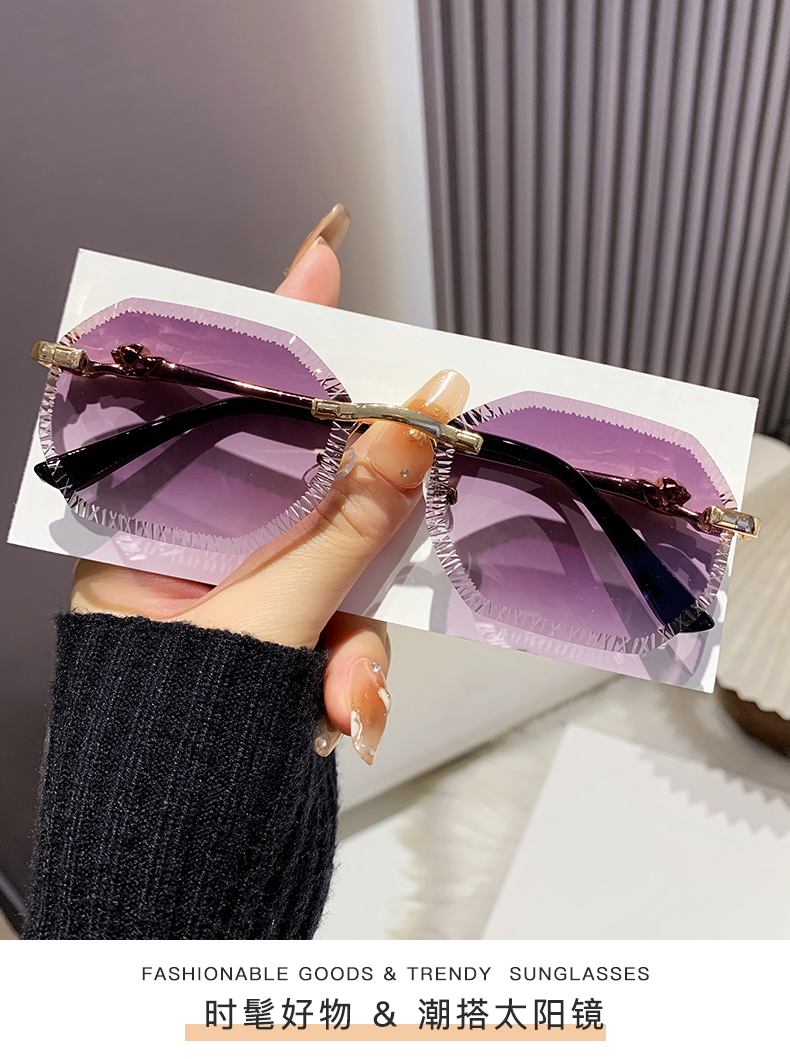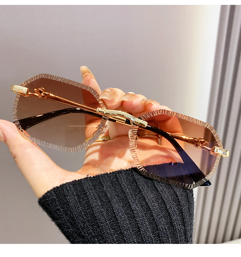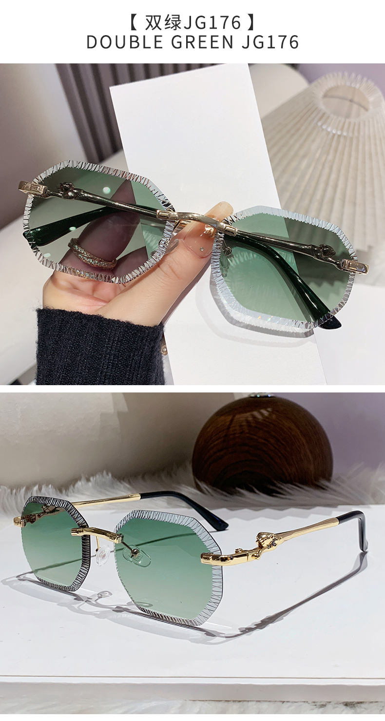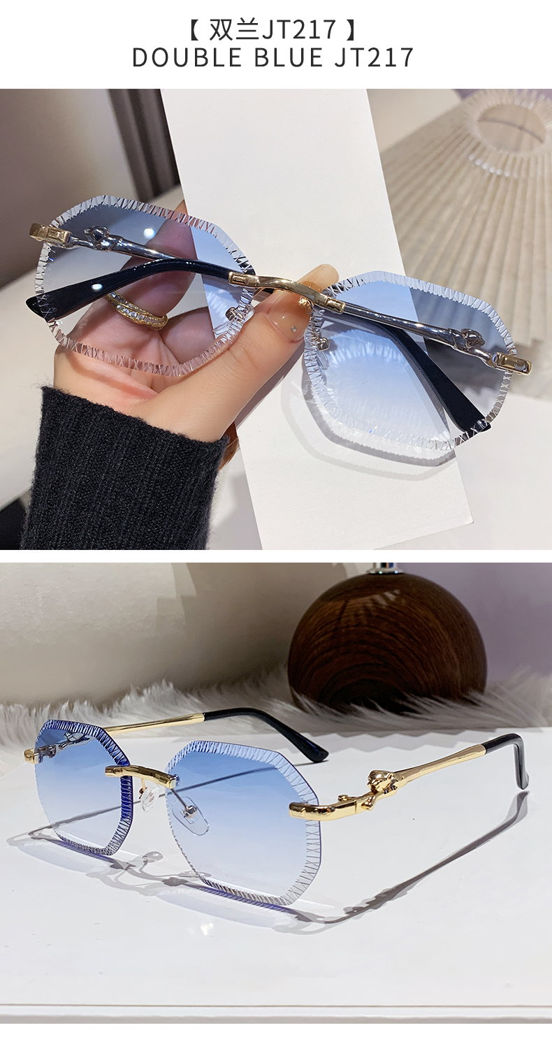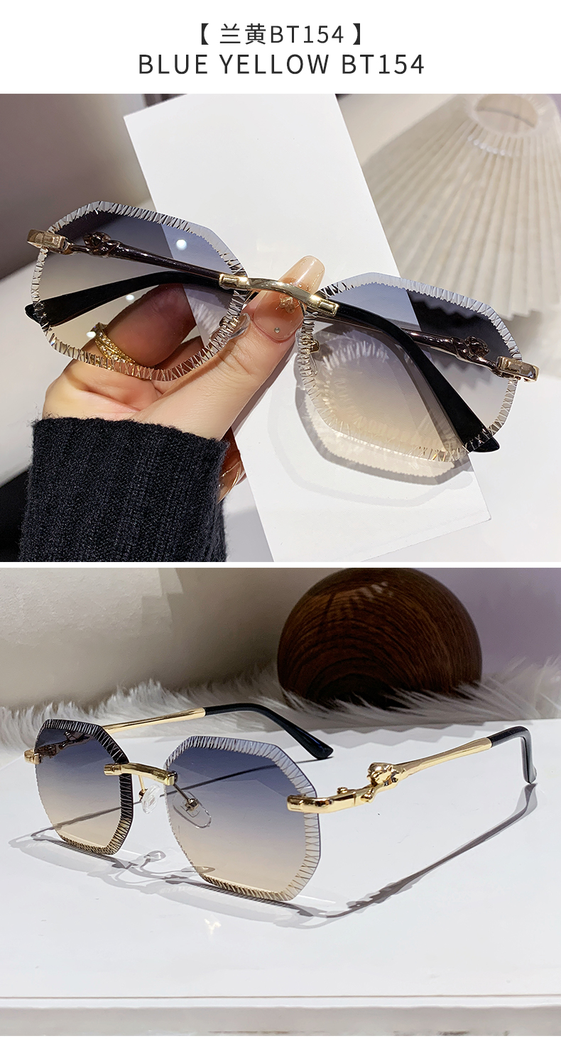 cross-border european and american fashion new style card home serrated rimless sunglasses european and american fashion leopard head metal sunglasses 90370 中文版