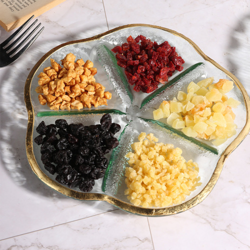 petal glass plate classification snack plate dried fruit household hotel restaurant bar ktv party glass plate 中文版