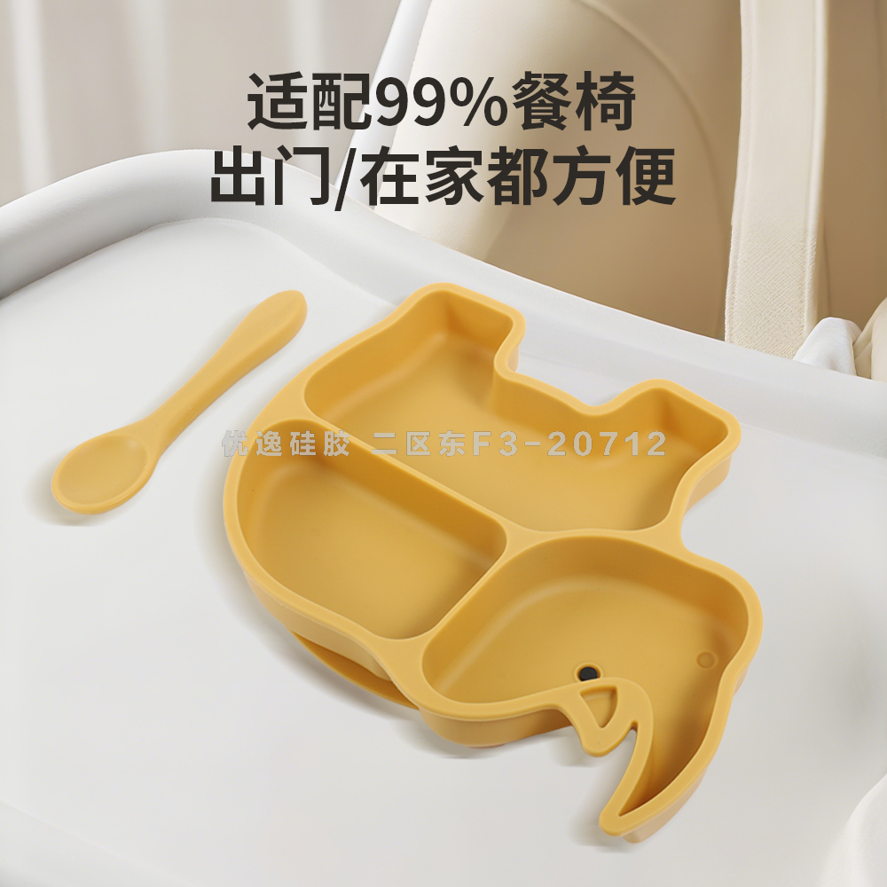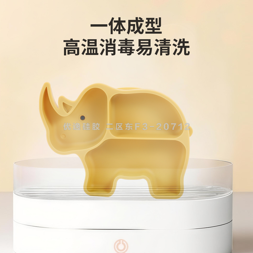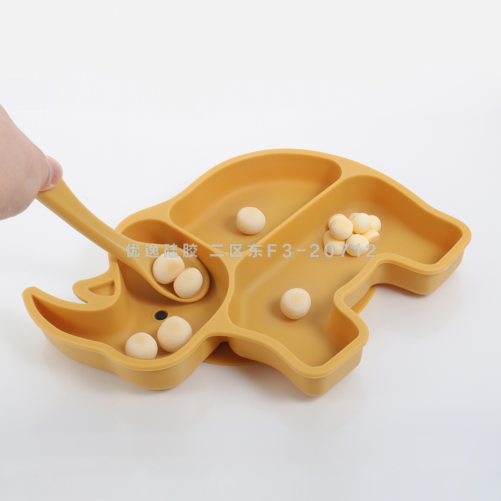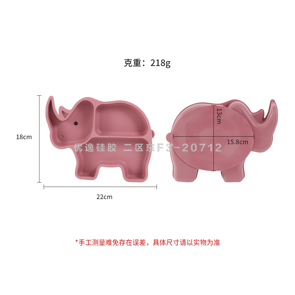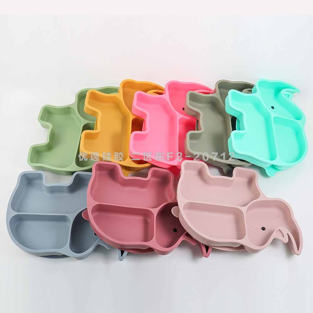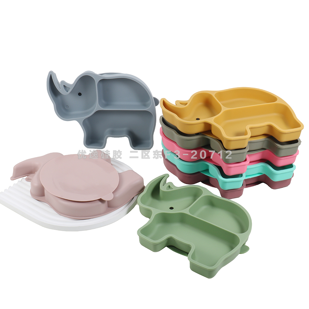 rhinoceros shape baby tableware with suction cup edible silicon cross-border hot selling partition dinner plate baby plate 中文版