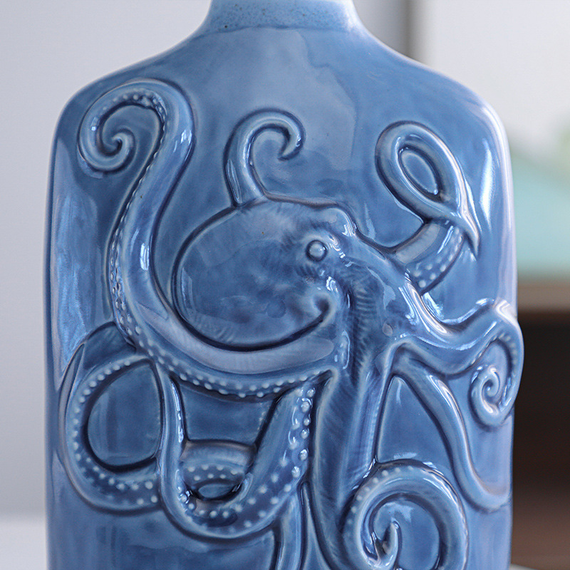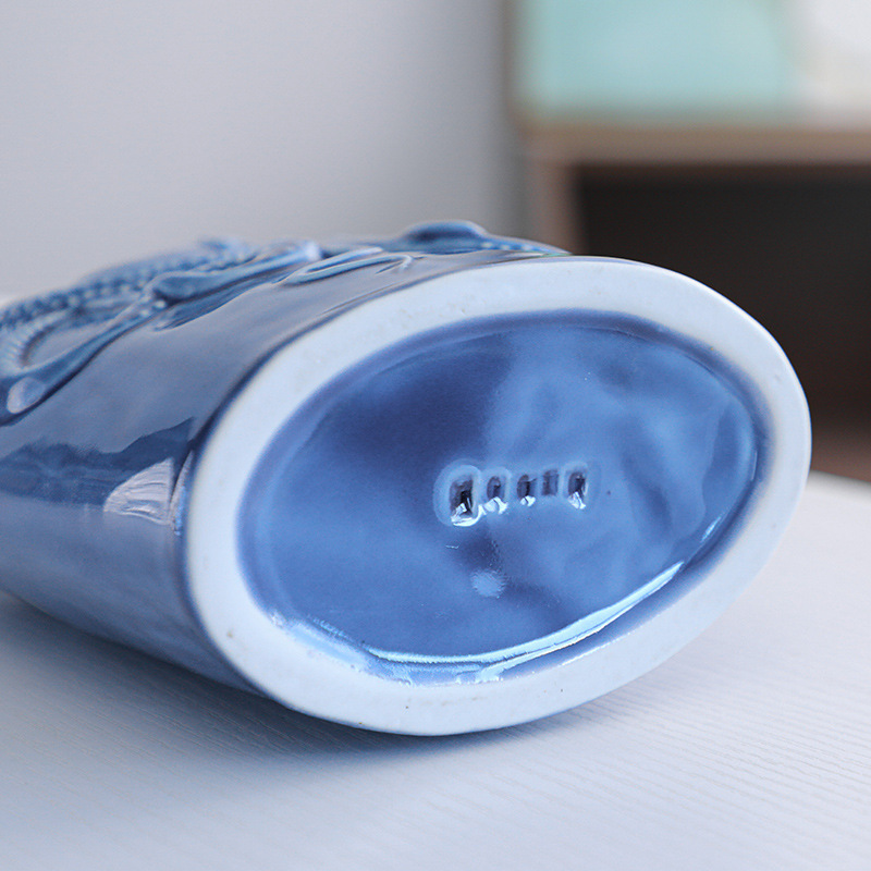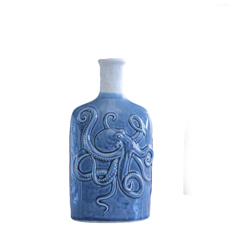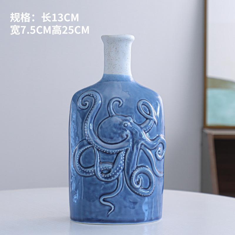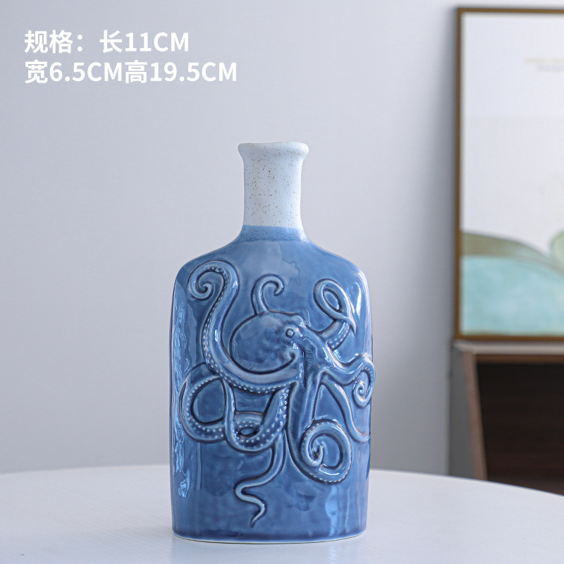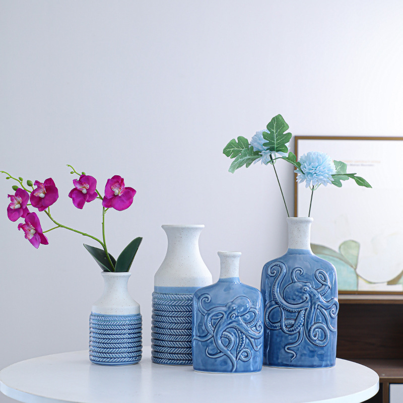 Product Description: Scandinavian ceramic ornament vase with ocean style, dual-color, minimalist modern dry flower holder, craft home decor, available in small and large sizes.