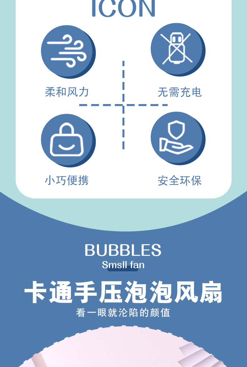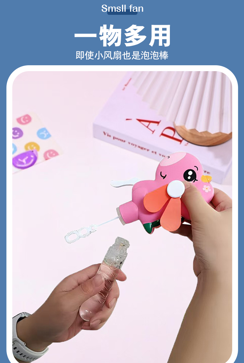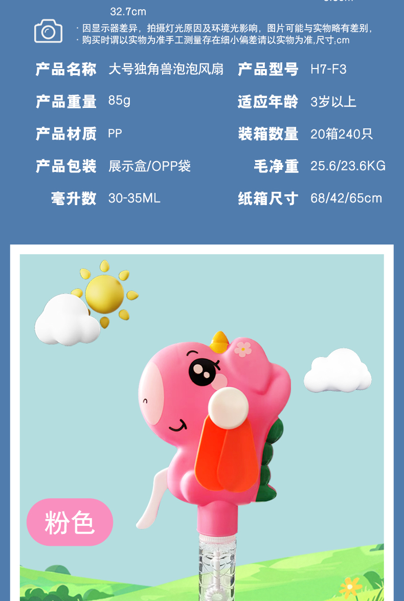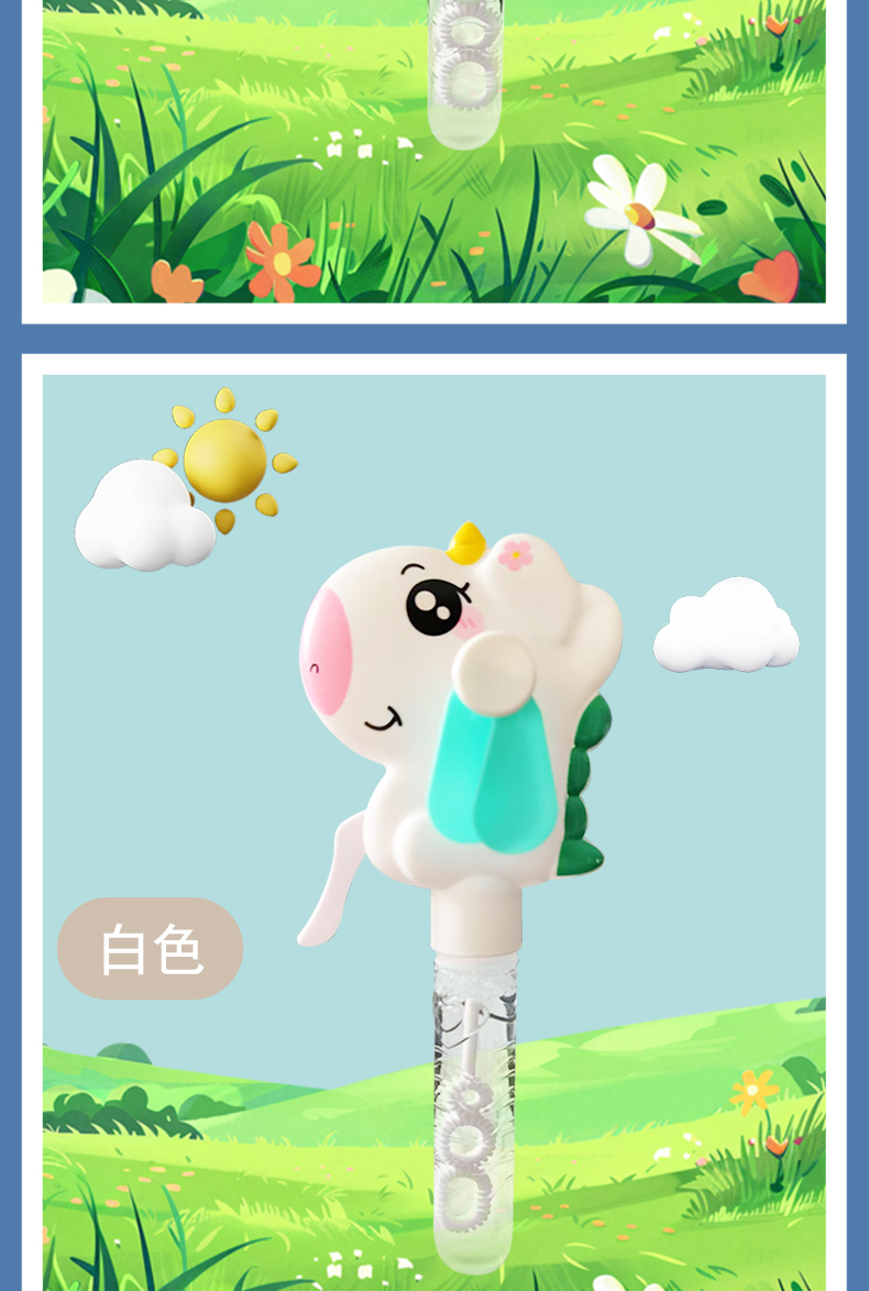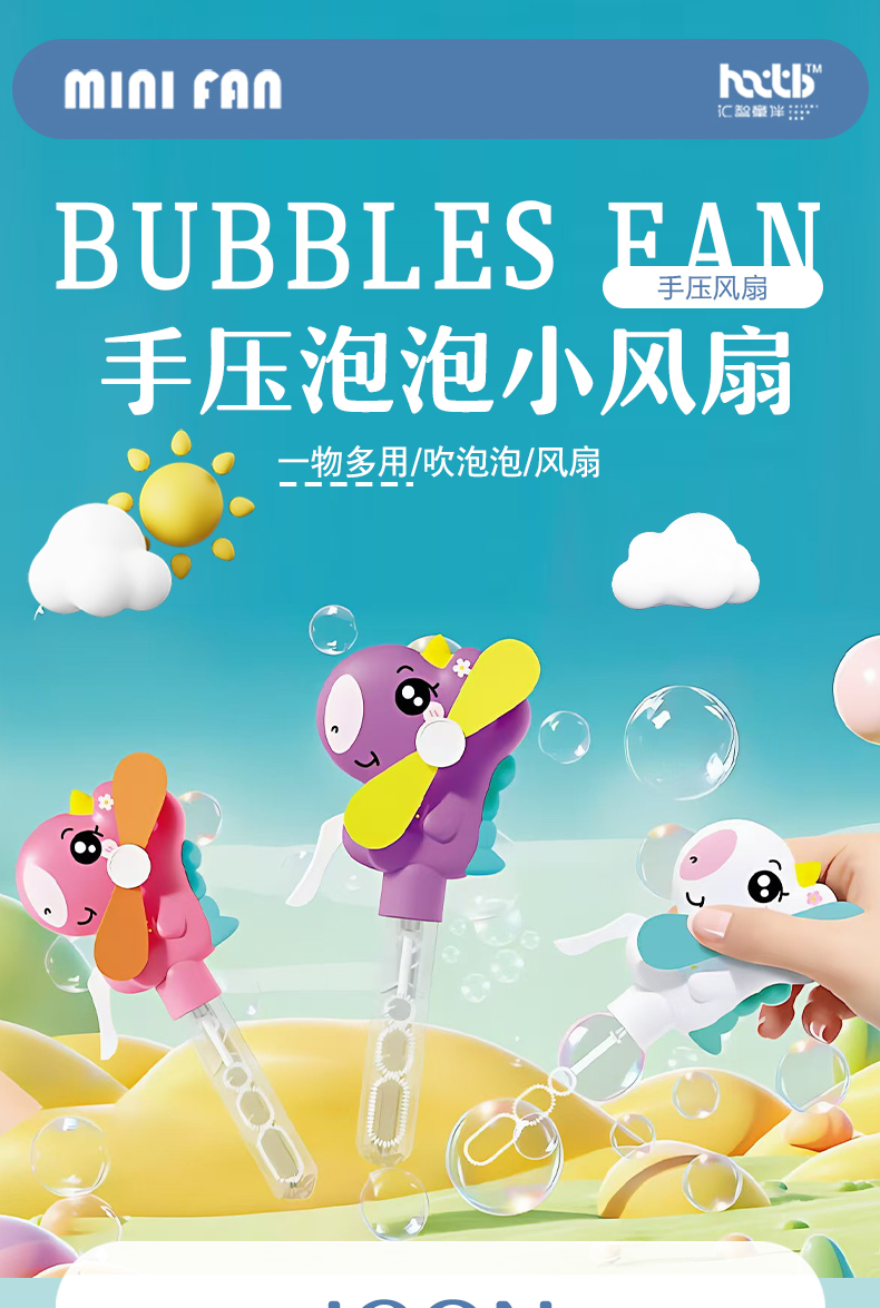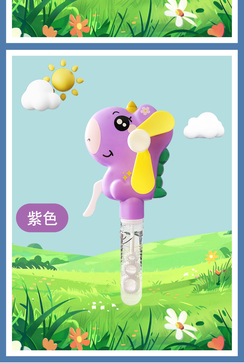Hand-cranked large-sized fan with unicorn design, adorable and fun to blow bubbles, specially designed for kindergarten gifts. Exported and wholesale within the country, the core selling point: no batteries required, eco-friendly, and fun interactive. Solves the pain point of summer heat for children, with CE, EN71, 3C certifications, ensuring quality. Inspires childhood joy and promotes parental-child relationships.