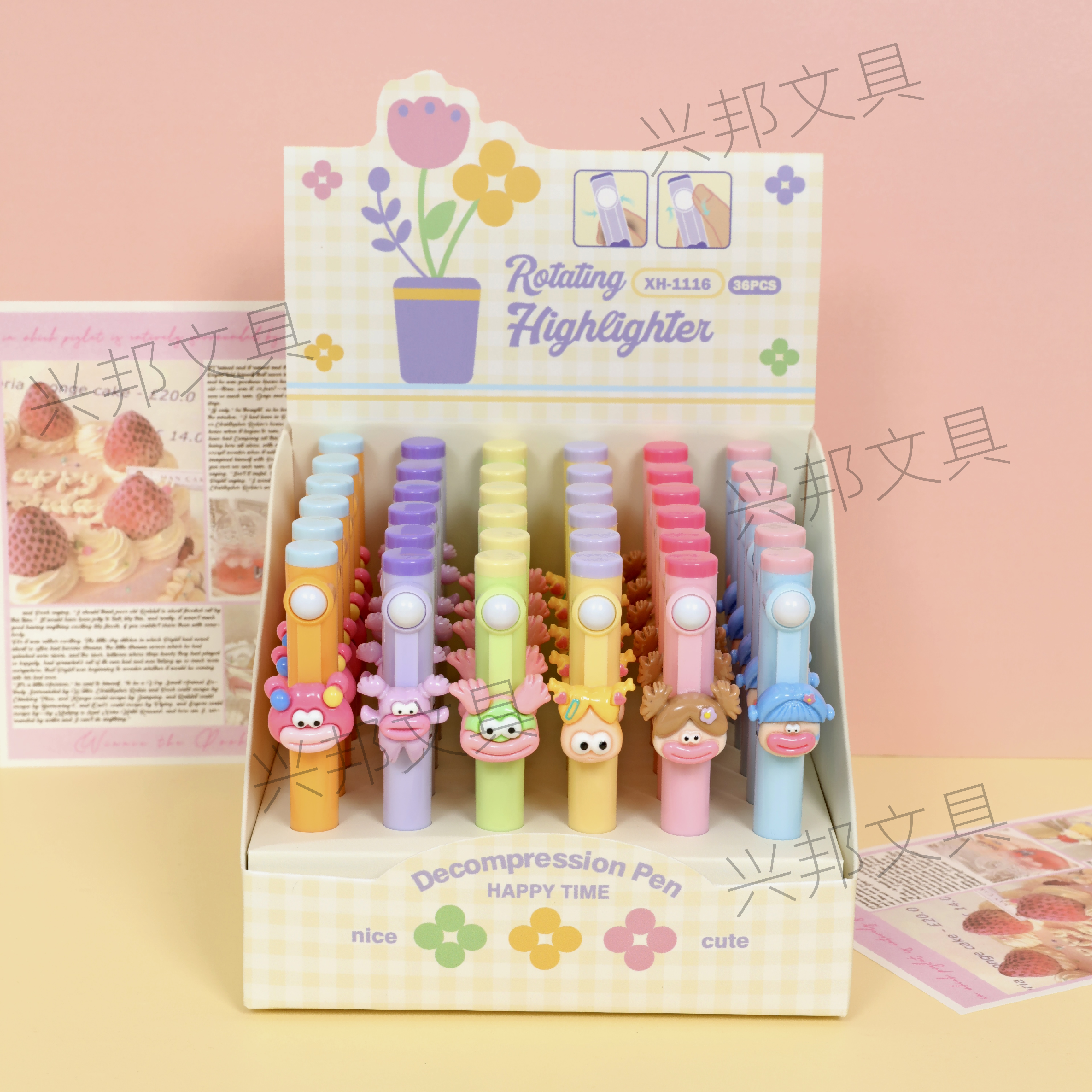 fluorescent pen student cute cartoon brush inscription hand account key color marking pen not smudge 中文版