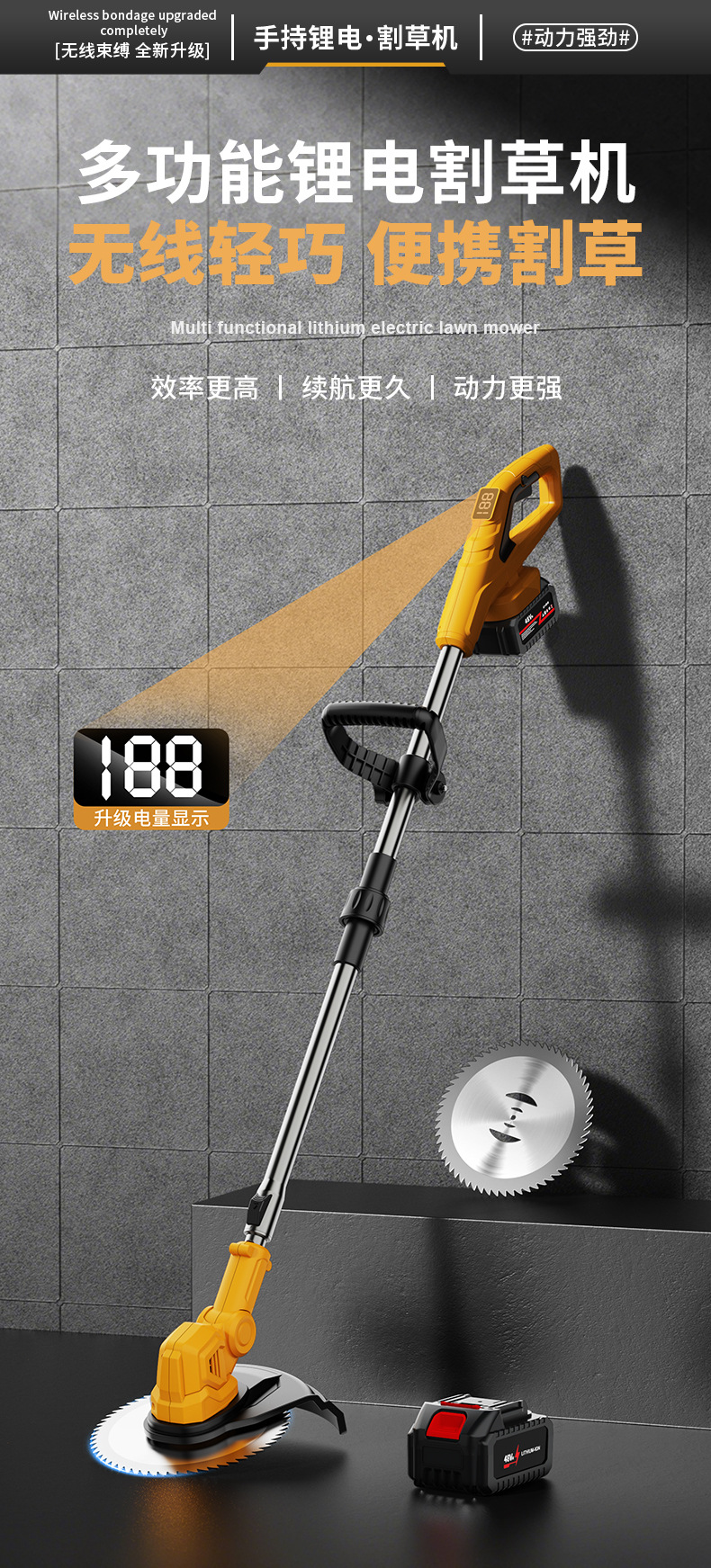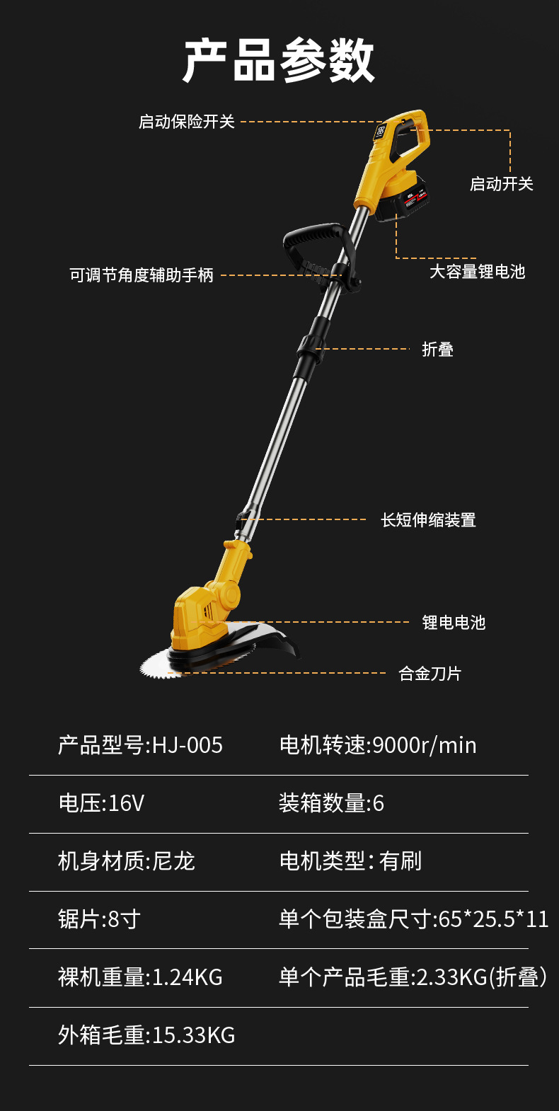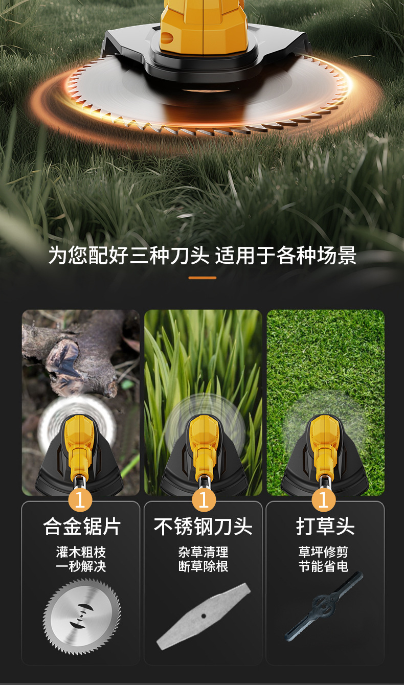 Accessories: 1 circular saw blade, 2 metal blades, 5 plastic blades, 1 wrench, 1 charger, 1 battery, 1 instruction manual, 1 bare machine