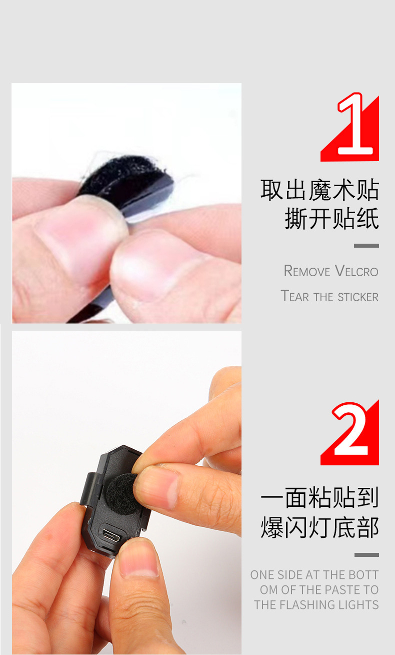 Long press the switch button to turn on or off, and after turning on the light, click the button to switch modes: constant brightness, slow cycle.Flash, burst, fast cycle