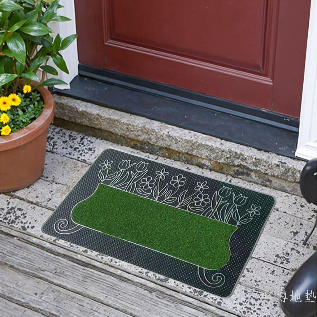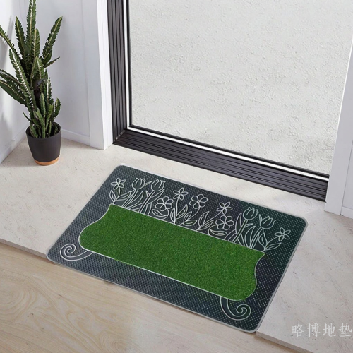 fashion rectangular pvc grass yam corrosion resistant non-slip rubber door mat printing puzzle pattern home entrance
