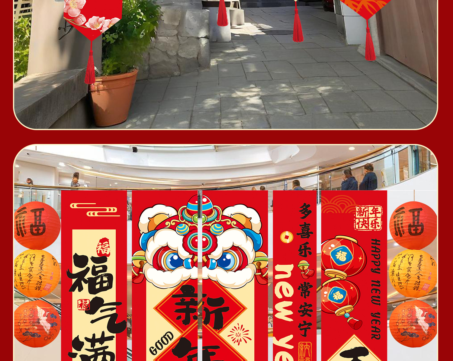happy new year (hanging cloth) + lanterns (6)