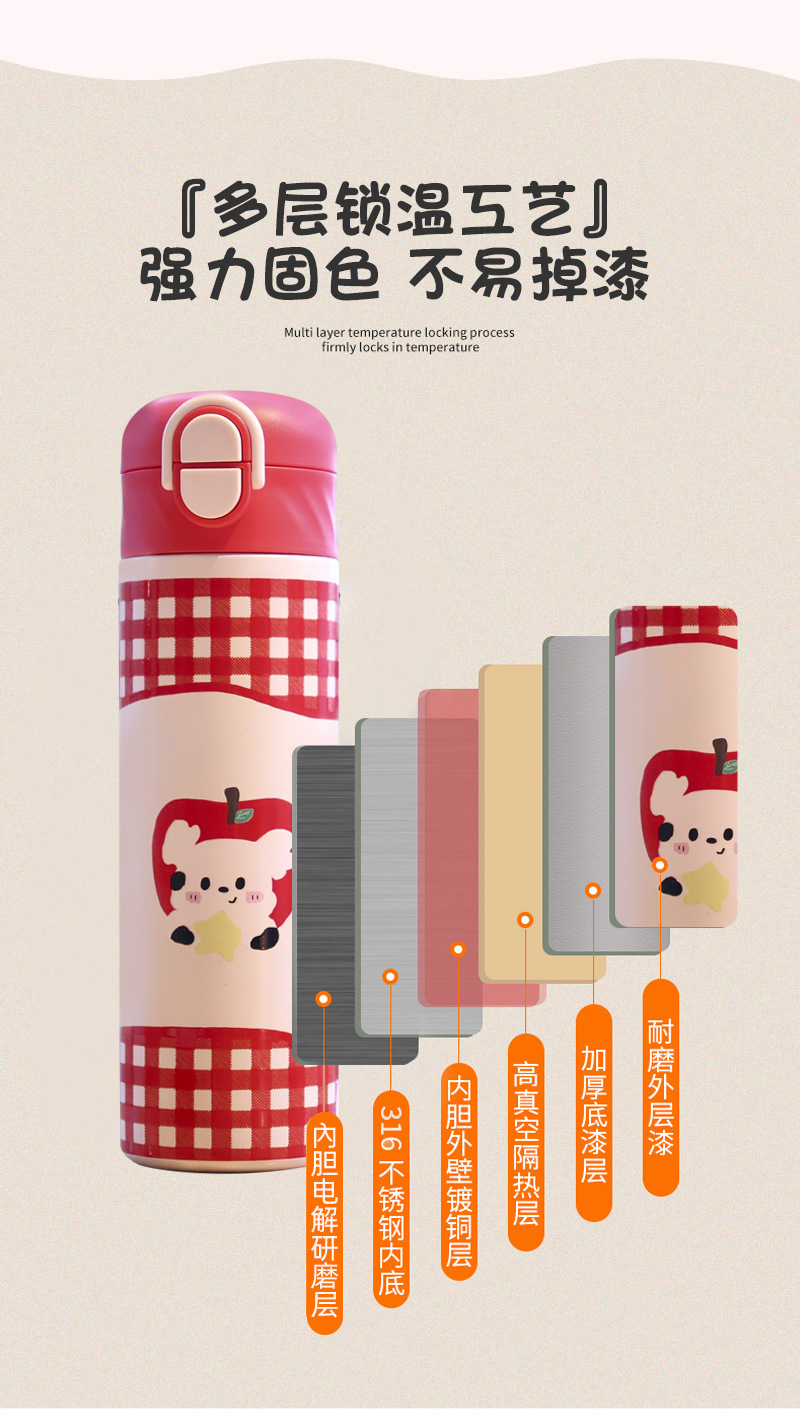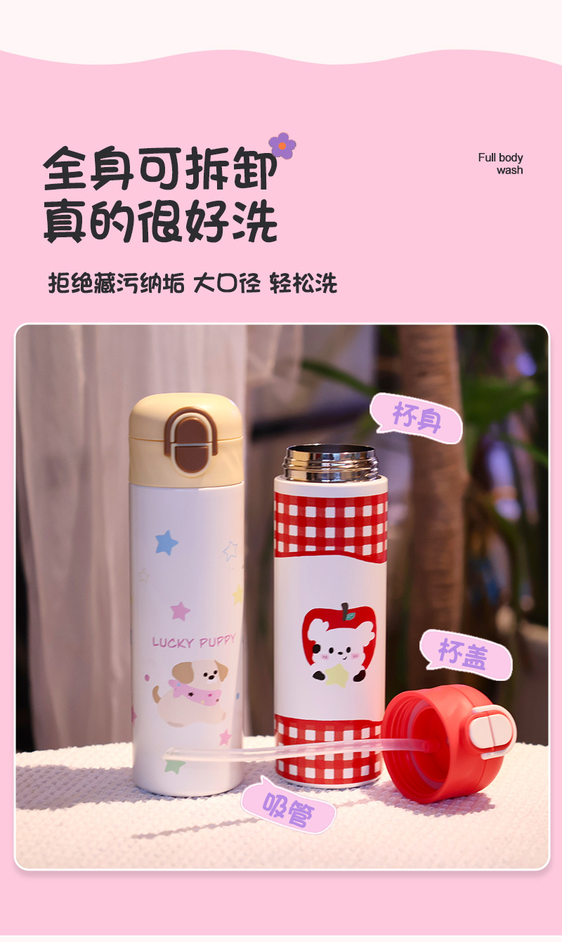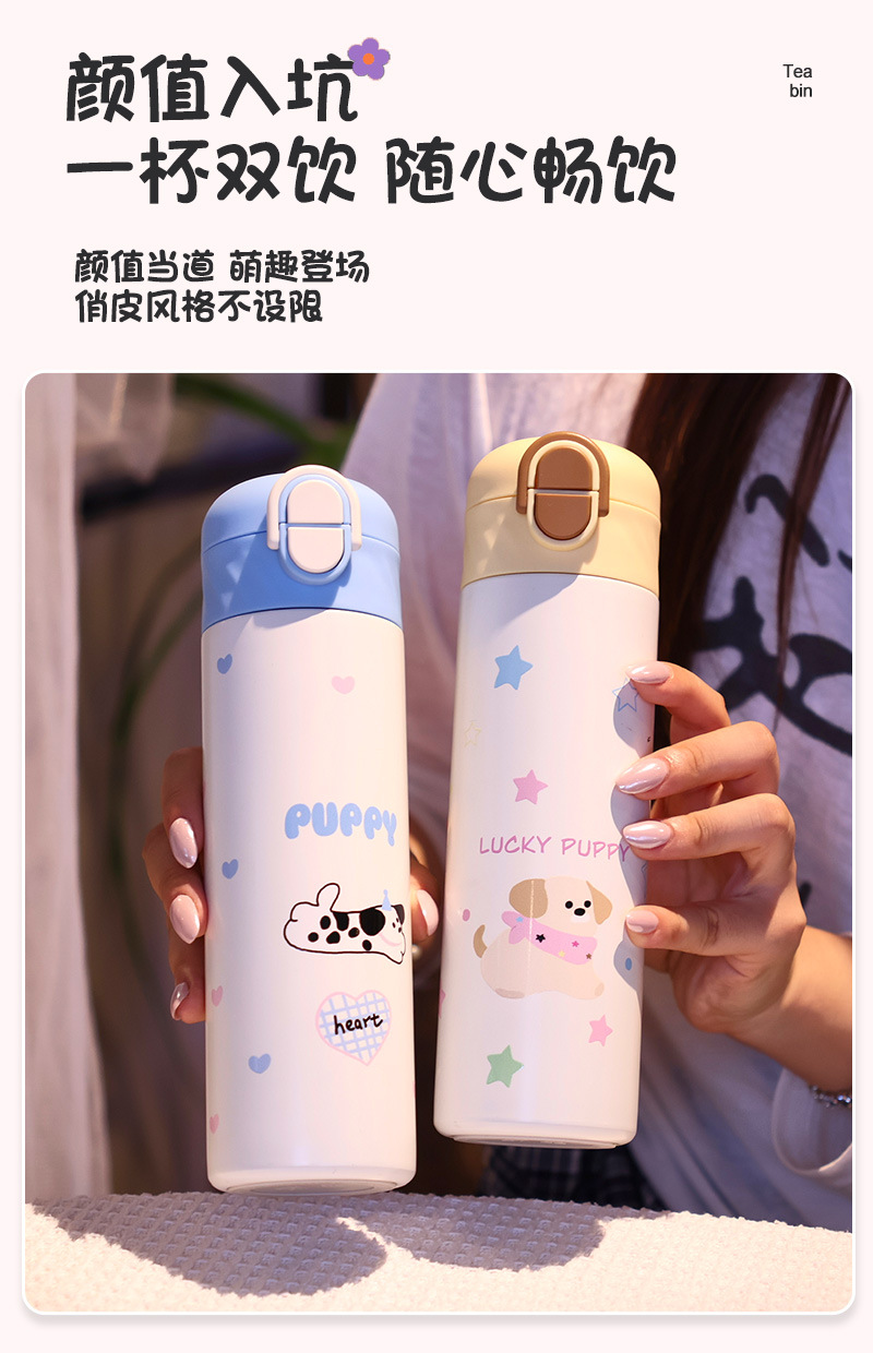 1212# cartoon dopamine double drink bullet cup stainless steel thermos cup for school portable convenient cup with straw