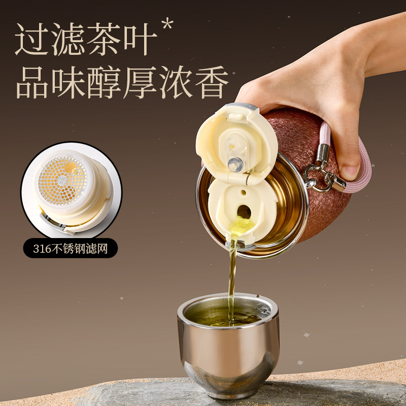 new titanium-covered fu lu cup tea water separation three-drink vacuum cup men's and women's outdoor portable high-end entry lux mini cup 中文版
