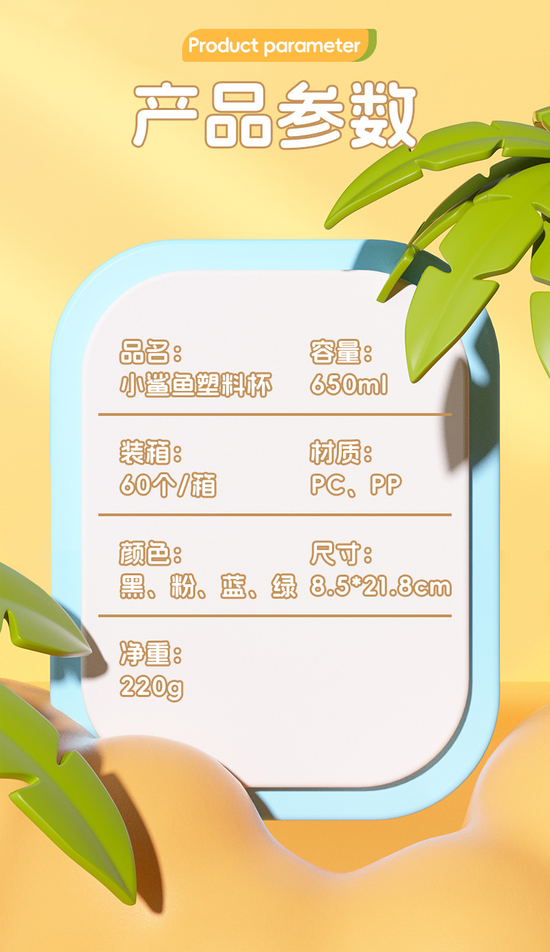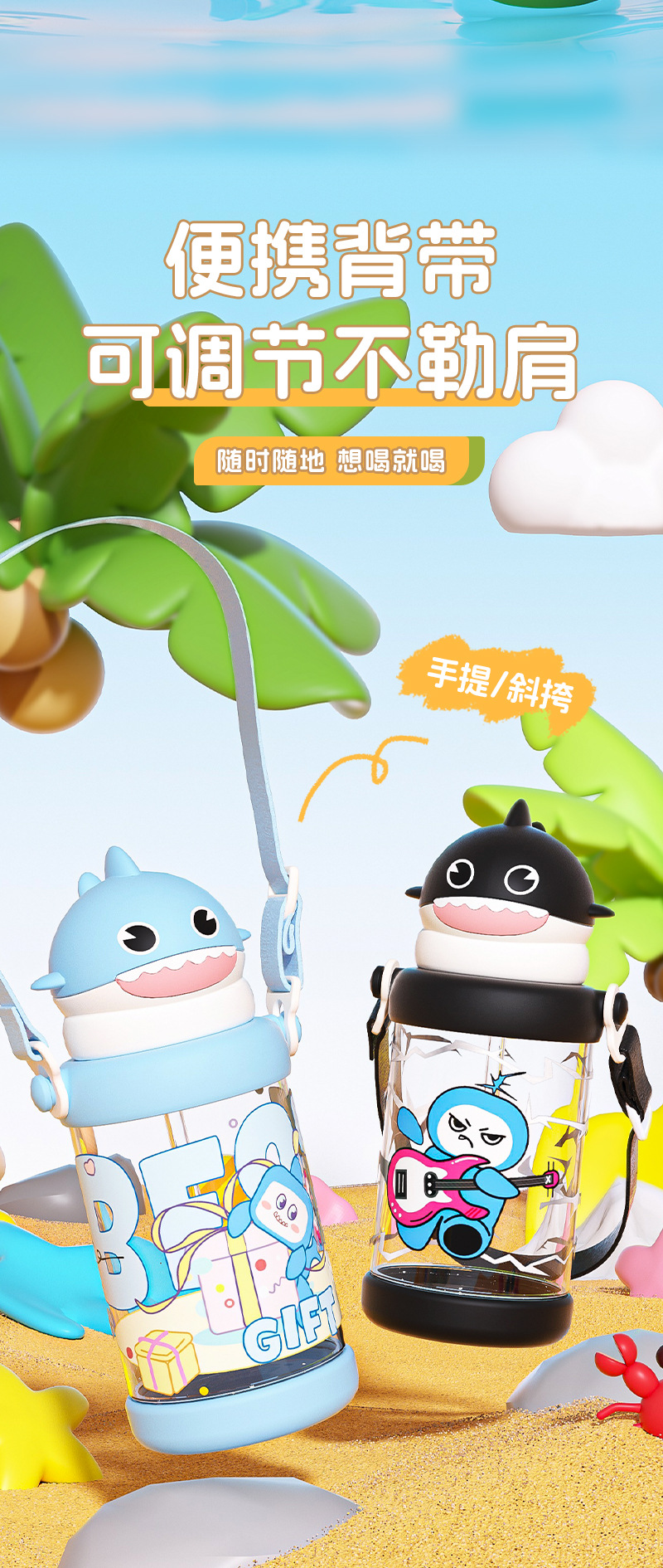 new cute little shark kid's mug portable straw plastic cup good-looking strap elastic cup with cover gift cup 中文版